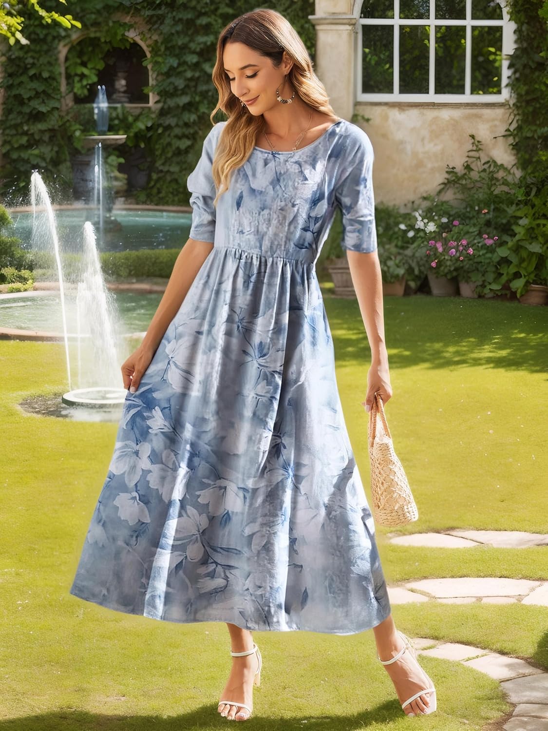 Hotouch Women’s 3/4 Sleeve A-line and Flare Midi Long Dress