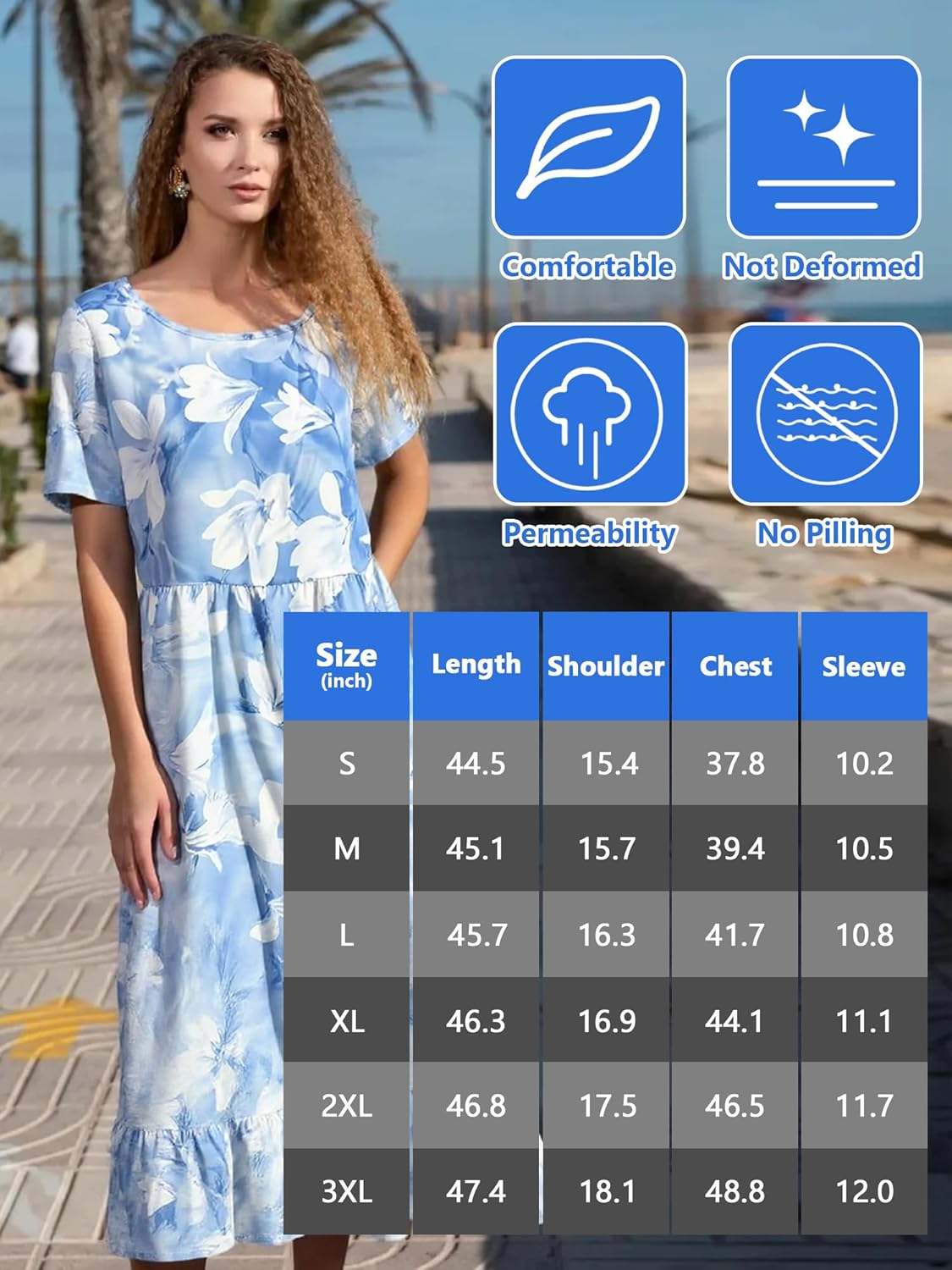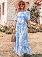 Home Clothing & Fashion Dresses Floral Print Maxi Dress for Women Casual Short Sleeve Summer Dress Loose Fit Floral Dress