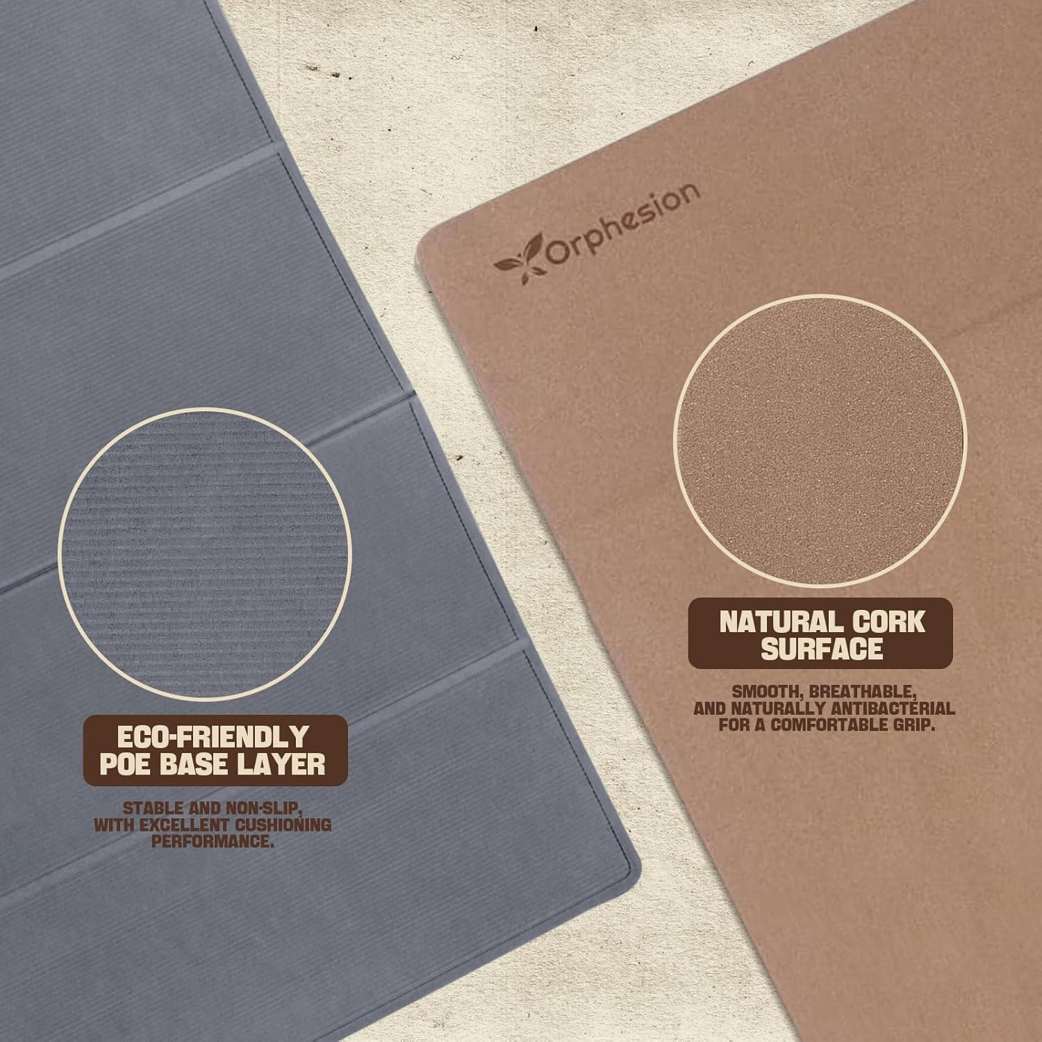 Superior Slip Resistance This is a high-quality double-sided non-slip exercise mat. The corrugated base has excellent traction on the floor. The surface of the fitness mat is compounded with all-natural and sustainable cork. This fabric can give you a softer touch and is easier to grip, especially in heated or hot yoga classes. Cork also has the advantage of being resistant to dirt and odor.