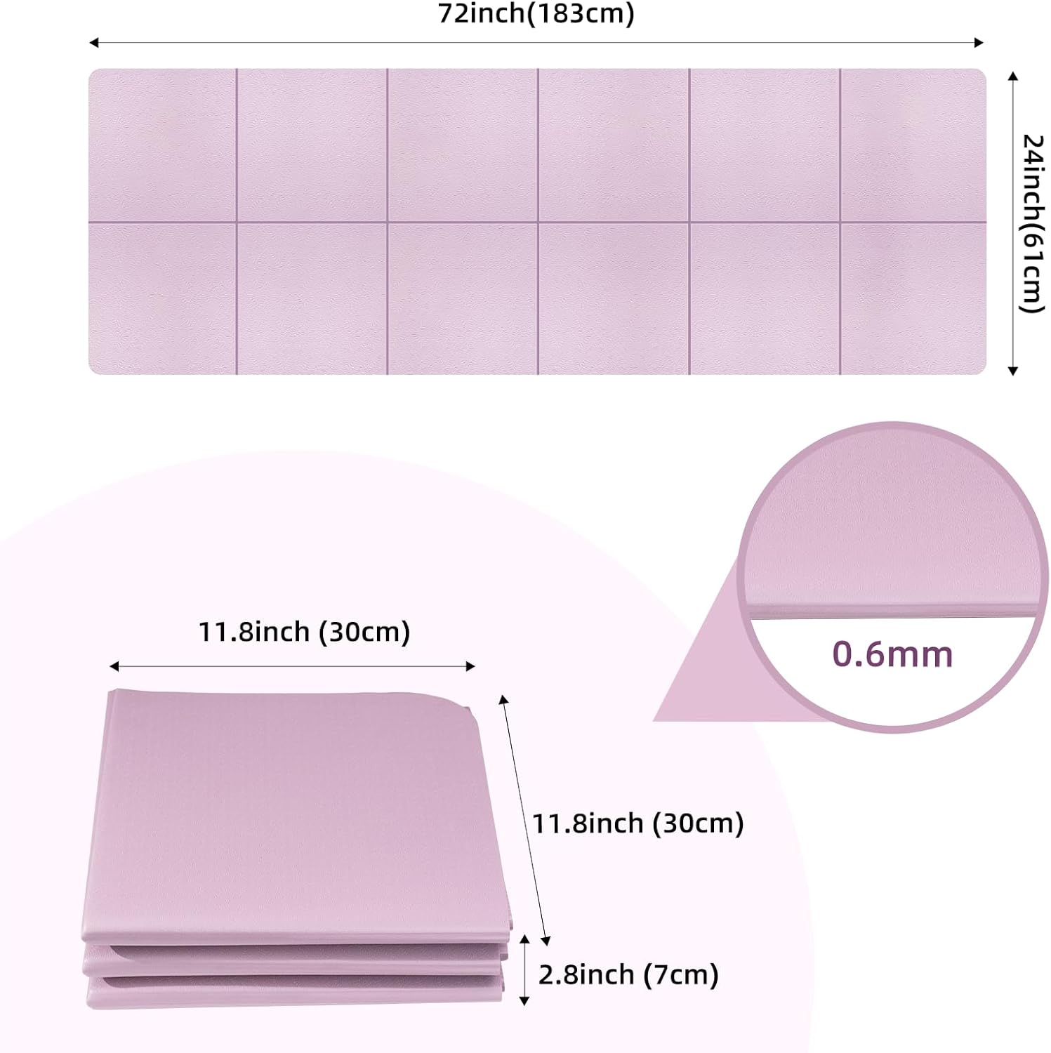 QCBF Foldable Yoga Mat for Travel, 6-8mm Thick, with Storage Bag, non Slip Tpe Sports Pilates Mat, 72 x 24 x 0.2Inches