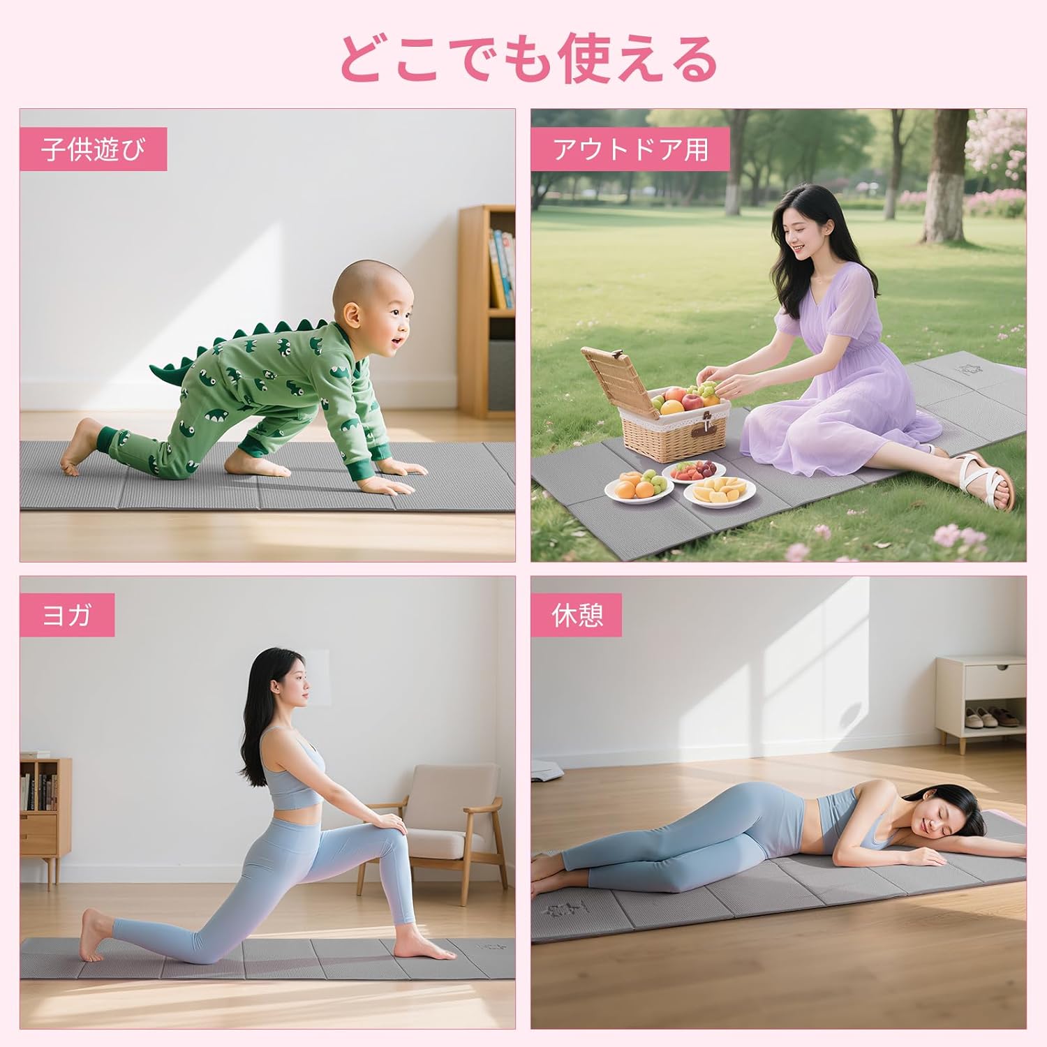 AULIFLOWER folding yoga mat is made of PVC material, so it is healthy and environmentally friendly. Made of durable PVC material with high density so it is soft and doesn’t feel stiff on the floor. No deformation or tear even after long time use. Foldable design provides a roomy size of about 68.1 x 24.0 inches (173 x 61 cm) when folded, compact size of about 11.8 x 9.8 inches (30 x 25 x 9 cm) when folded, and can be easily carried in the included storage bag. This yoga mat is not only great for yoga, pilates, muscle training, but also for napping, camping, outdoor exercises.