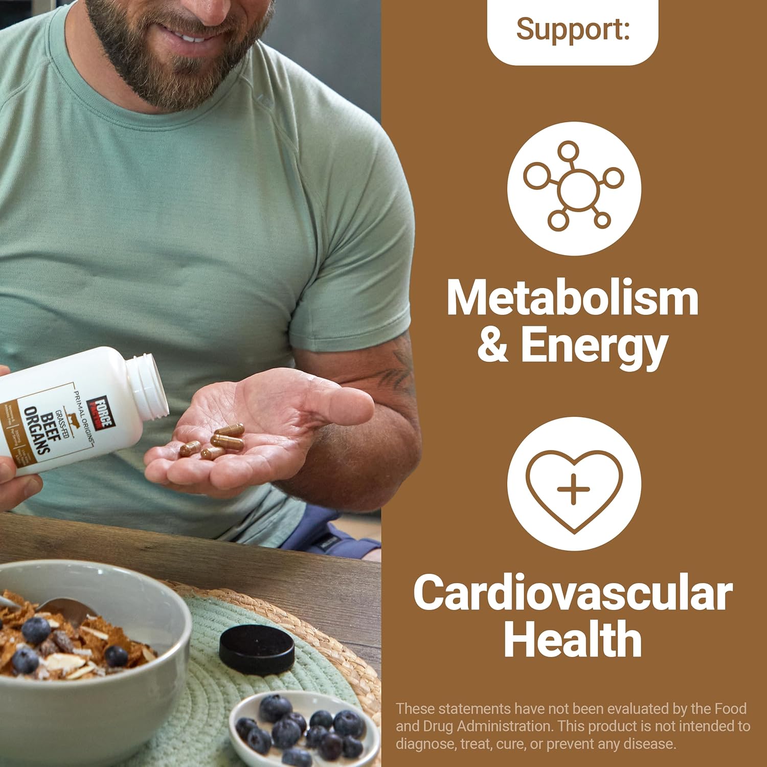 FORCE FACTOR Primal Origins Beef Organ Supplement Made with Pasture-Raised, Grass Fed Beef & 5 Beef Organs Including Beef Liver, Kidney, Heart, Pancreas, & Spleen, Hormone Free, Non-GMO, 150 Capsules
