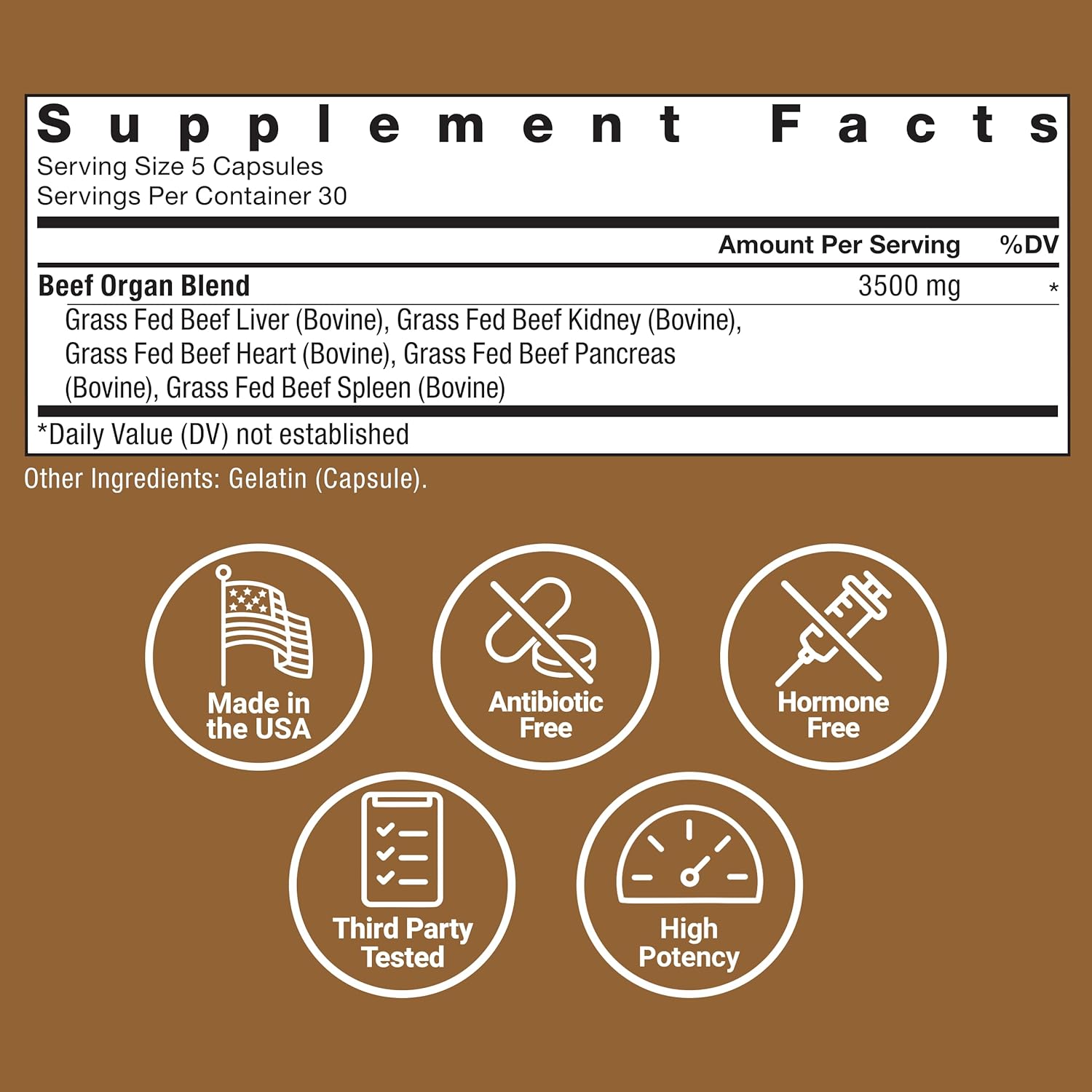 HIGH-POTENCY 3,500mg PER SERVING: Experience the nutritional power of grass-fed beef organs with a potent 3,500mg dose per serving. Get maximum benefits and results with every capsule.