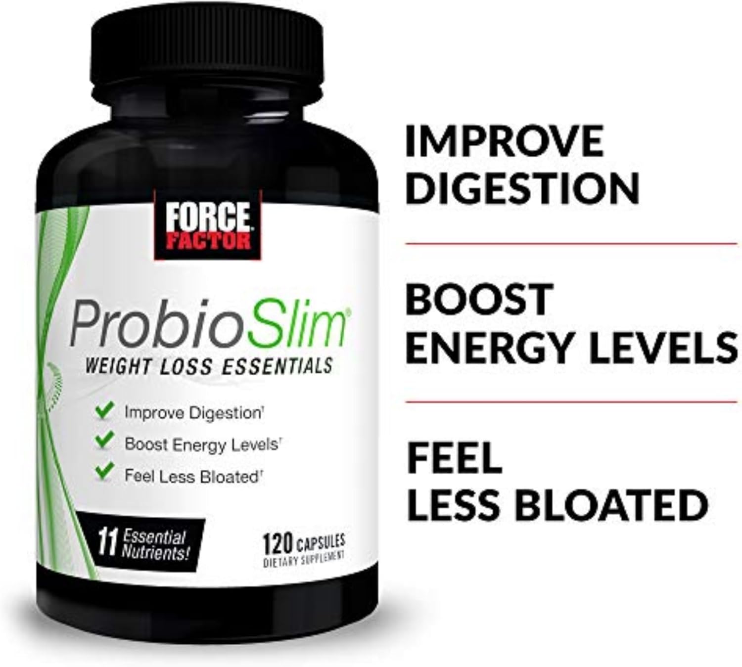 Force Factor ProbioSlim Weight Loss Essentials Complete Daily Digestive Health and Weight Loss Probiotic Supplement for Women and Men with Electrolytes and Green Tea Extract, 120 Capsules