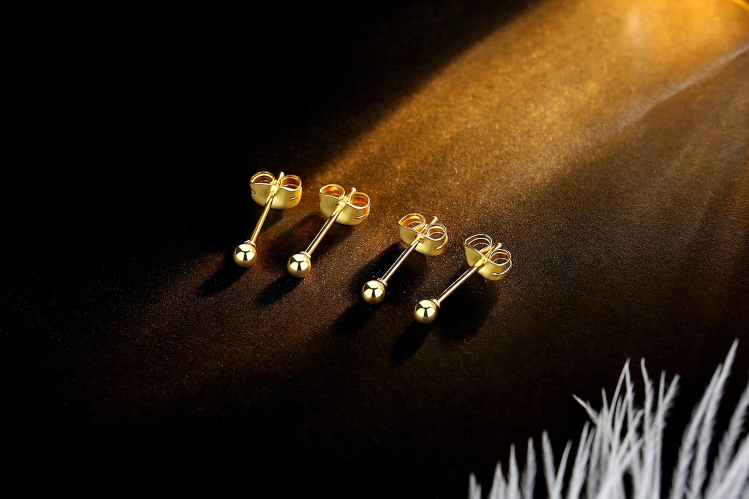 Home Jewelry & Fashion Accessories Earrings FOSIR 6 Pair Tiny Women 14K Gold Plated Ball Stud Earrings Surgical Stainless Steel Earrings Set, 2-6MM