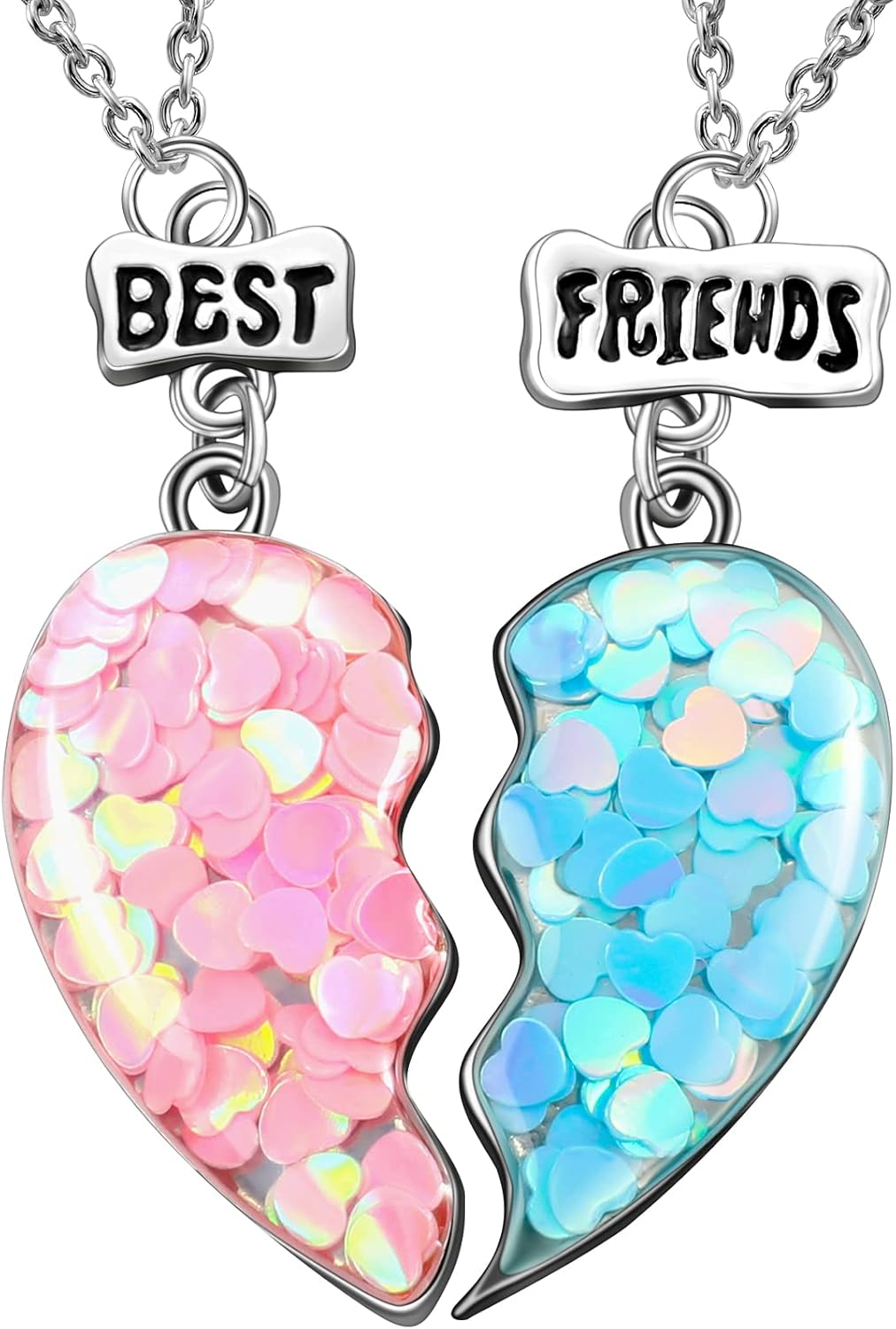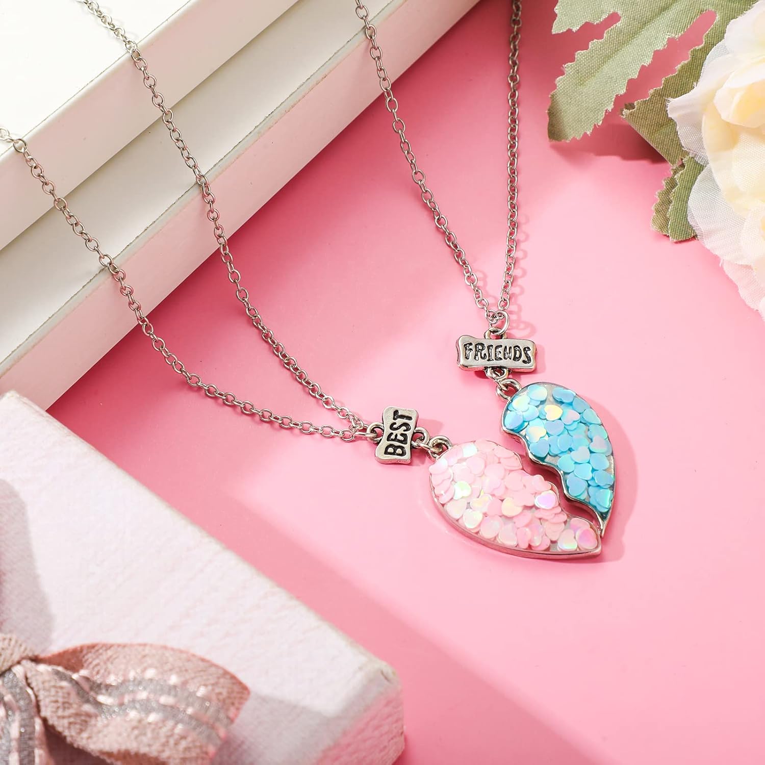 Friendship Necklaces 2 Pieces Friend Necklaces for 2 Girls Split Heart Mermaid Tail Pendant Bff Necklace Half Heart Connect Necklace, 18 inches/ 45 cm in length, Metal, alloy