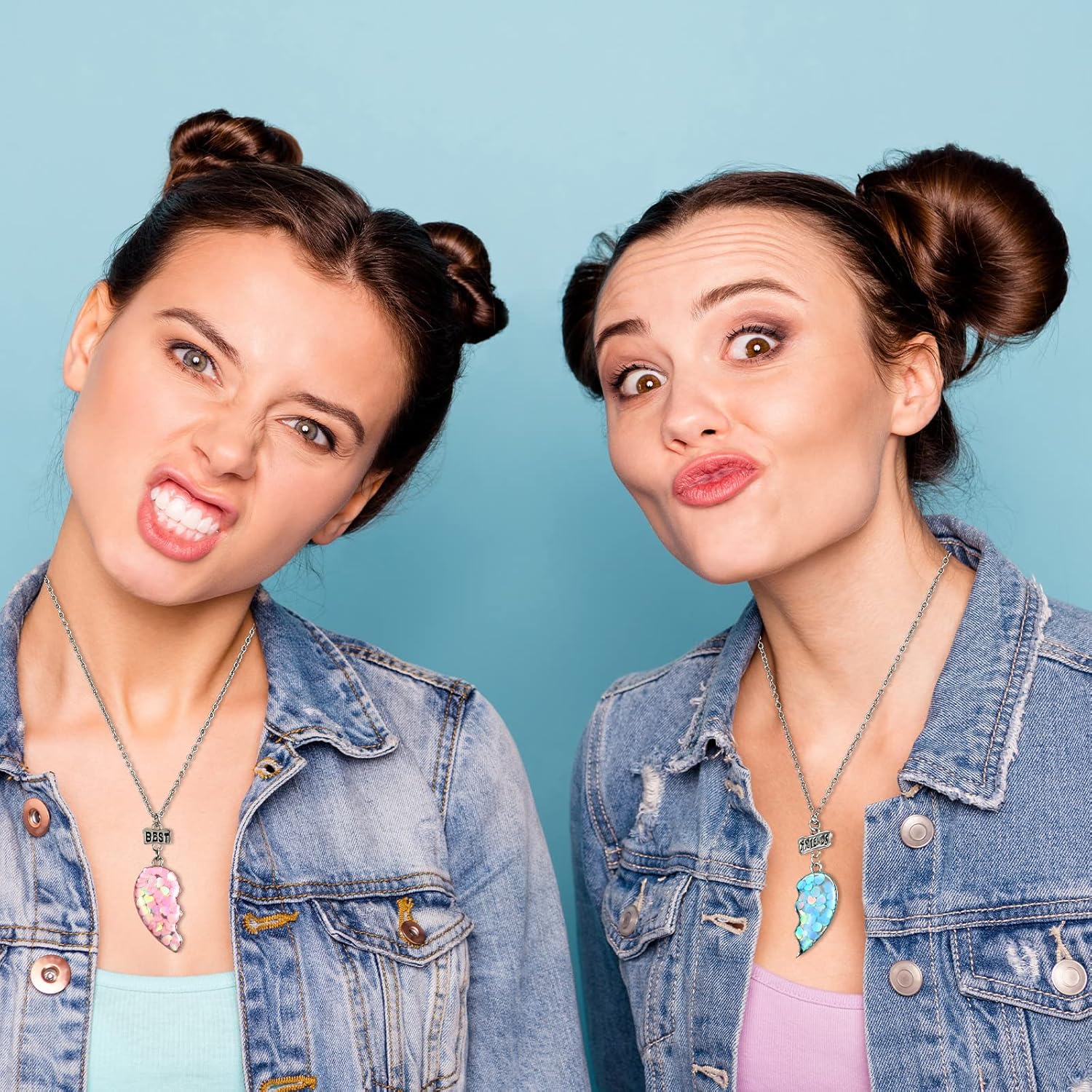 Heart shaped pendant is combined with bright heart sequins, creative design makes the 2 parts of the heart match each other, symbolizing no matter how far you and your friend are, your hearts are still together.
