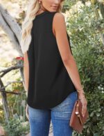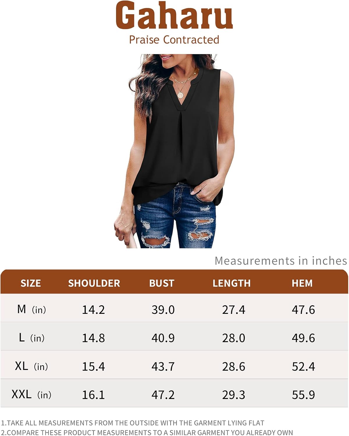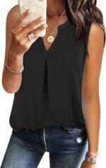 Gaharu Women’s V Neck Sleeveless Blouses Shirts Button Down Pleated Flowy Tunic Tank Top