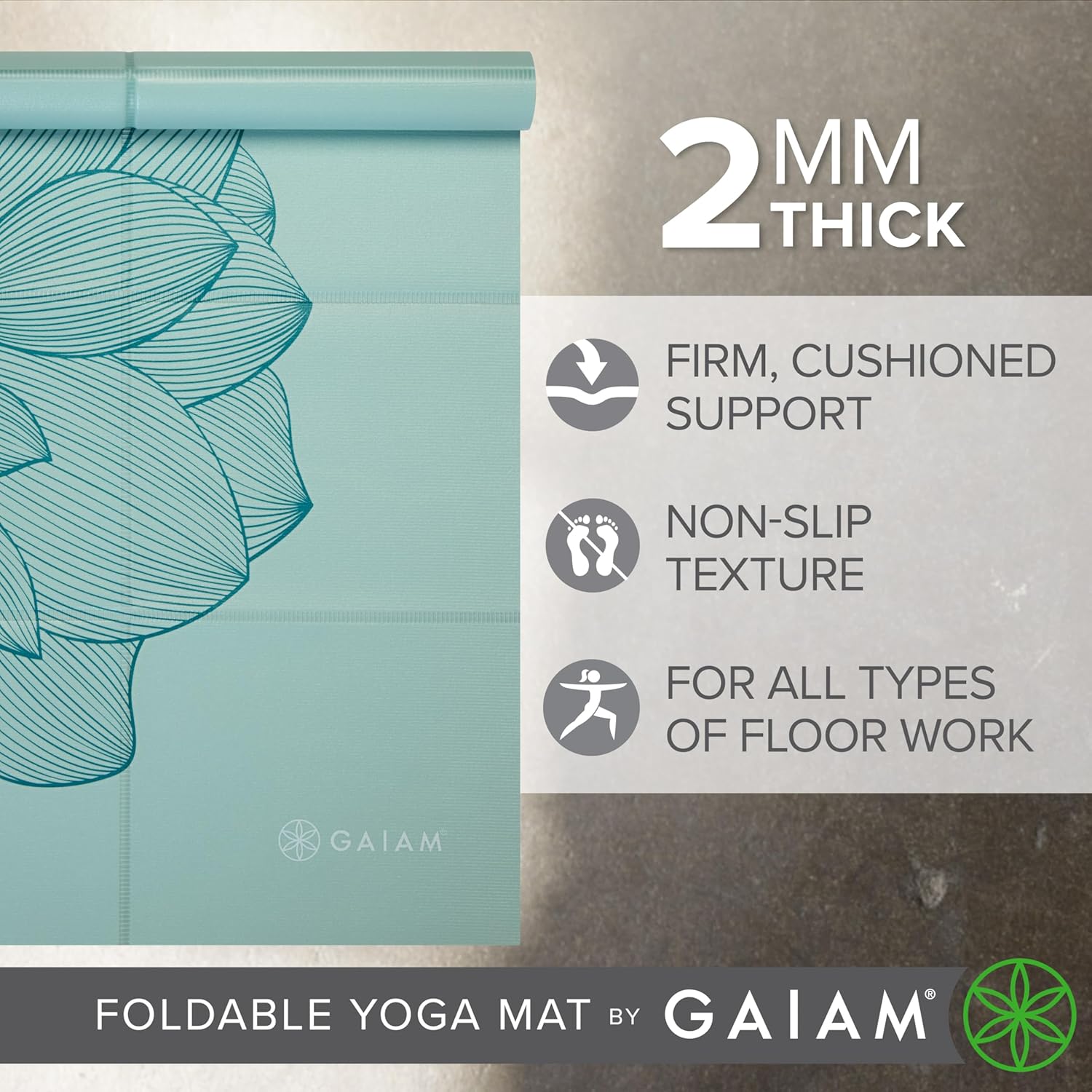 ‘Gaiam Yoga Mat – Folding Travel Fitness & Exercise Mat – Foldable Yoga Mat for All Types of Yoga, Pilates & Floor Workouts (68”L x 24”W x 2mm Thick)’