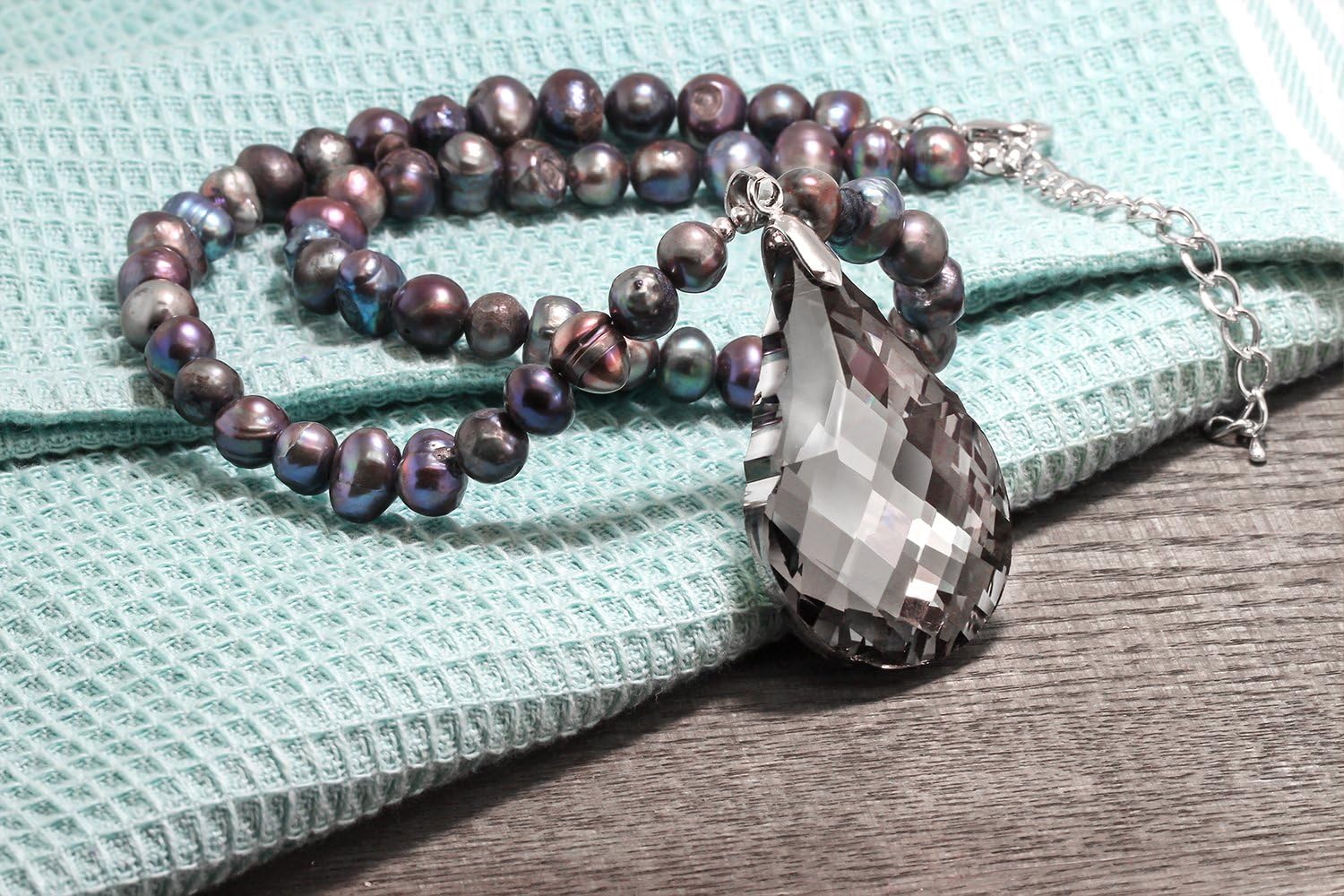 Home Jewelry & Fashion Accessories Necklaces & Pendants Gem Stone King Black Dyed Cultured Freshwater Pearl Faceted Pendant Necklace 16 Inch with 2 Inch Extender