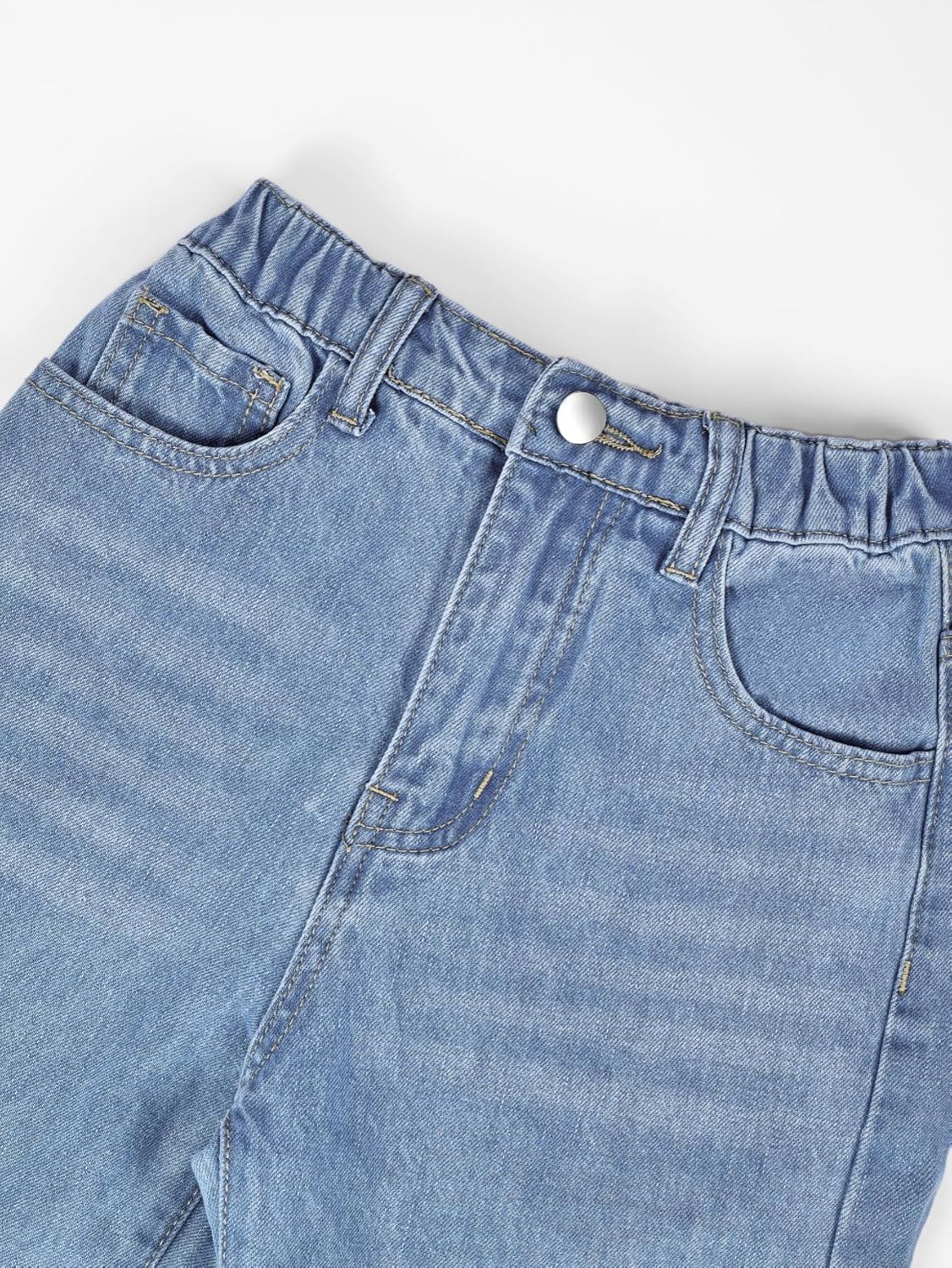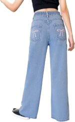Home Clothing & Fashion Jeans & Pants Girl’s Bow Print Back Elastic High Waist Cute Denim Pants Trendy Tween Streetwear Y2K Jeans