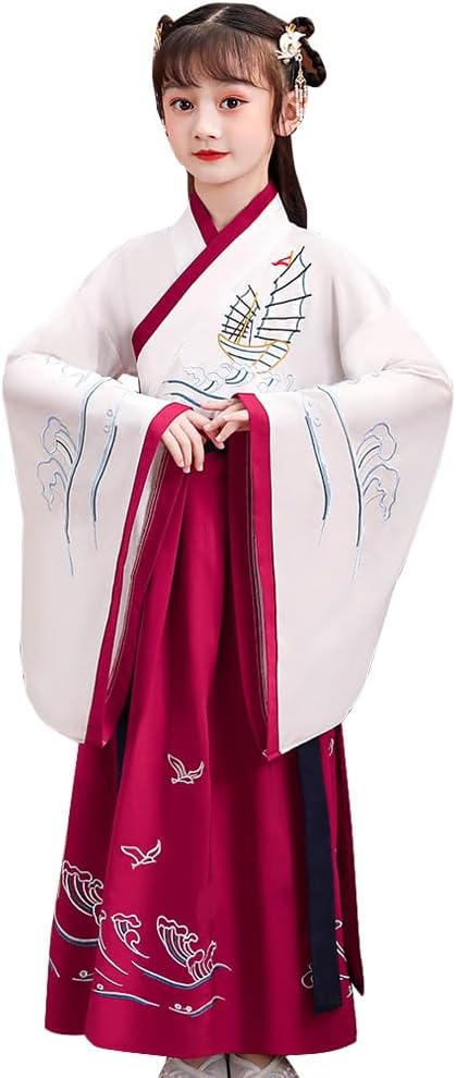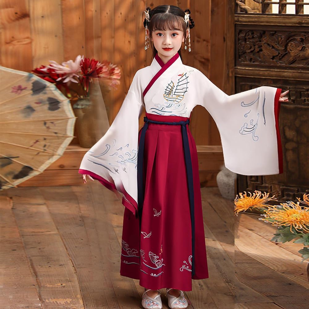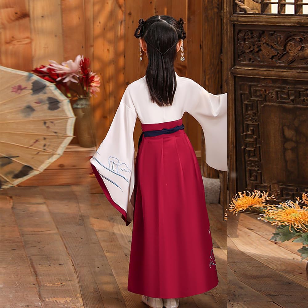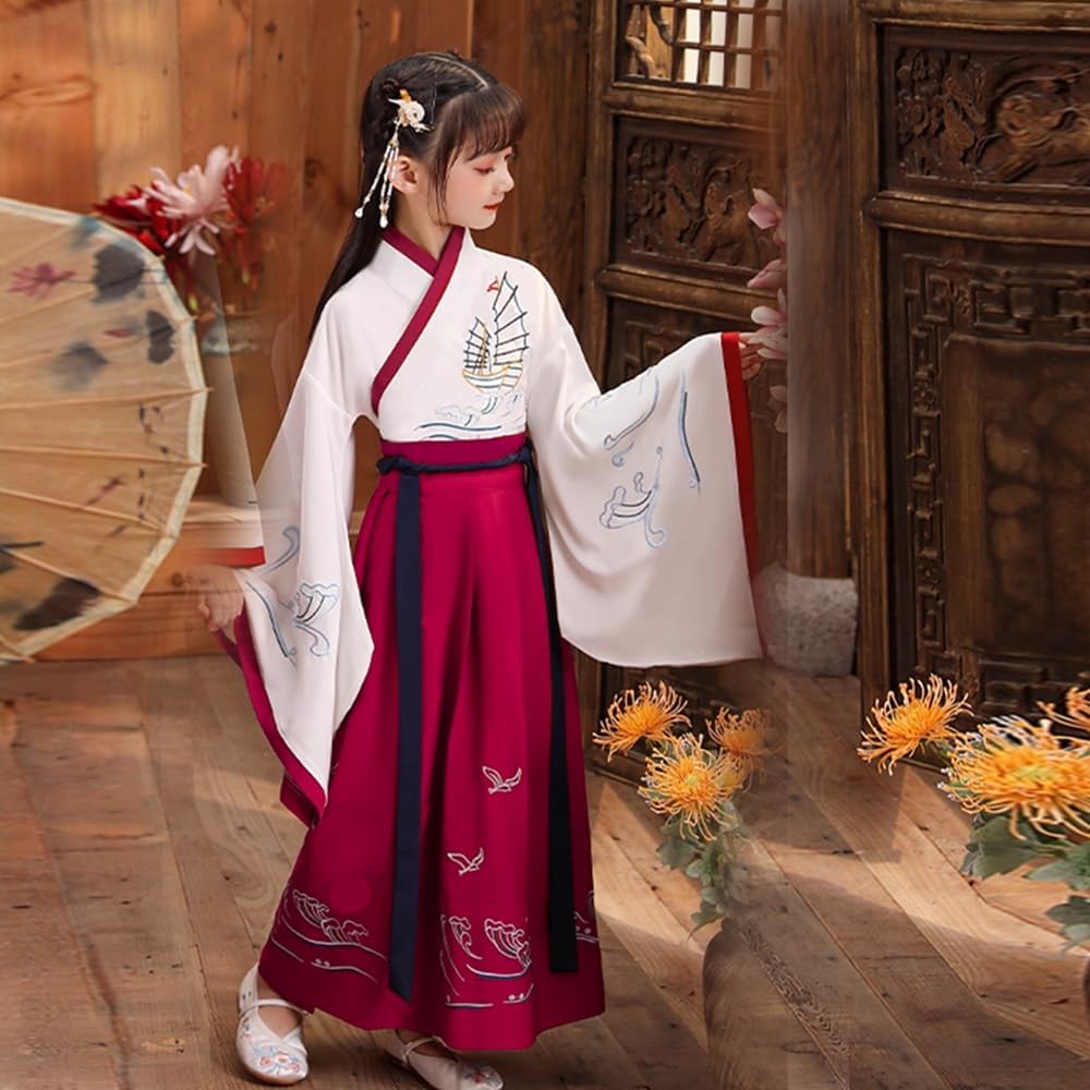 Home Clothing & Fashion Dresses Girl’s Chinese Traditional Hanfu Dress – Elegant Wide Sleeve, Waist-Tied Long dress for Kids School Opening Ceremony & Cultural Performance
