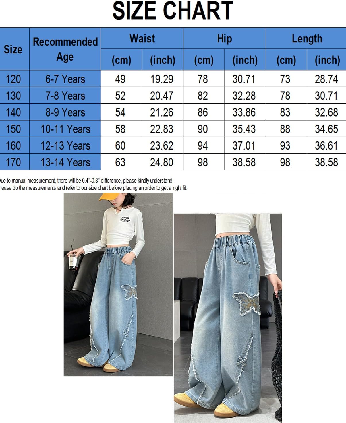 Be the first to review “Girls Wide Leg Jeans Elastic Waist Baggy Butterfly Printed Jeans Y2k Aesthetic Loose Denim Pants 6-14 Years” Cancel reply