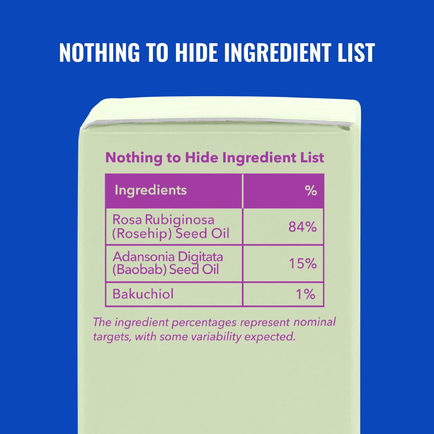 FORMULATED FOR OILY SKIN TYPES: This oil blend is gentle enough for all skin types but can be particularly beneficial for those with oily skin. Our formula contains only the bakuchiol, rosehip, and baobab oils with no added fragrances or chemicals.