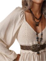 Category: Dresses Tags: Boho, Crochet, Dress, Dresses, Flowy, GORGLITTER, Hollow, Line, Long, Neck, Puff, Short, Sleeve, Womens