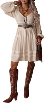 Home Clothing & Fashion Dresses GORGLITTER Women’s Crochet Hollow Out V Neck Dress Puff Long Sleeve A Line Flowy Boho Short Dresses