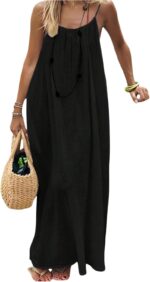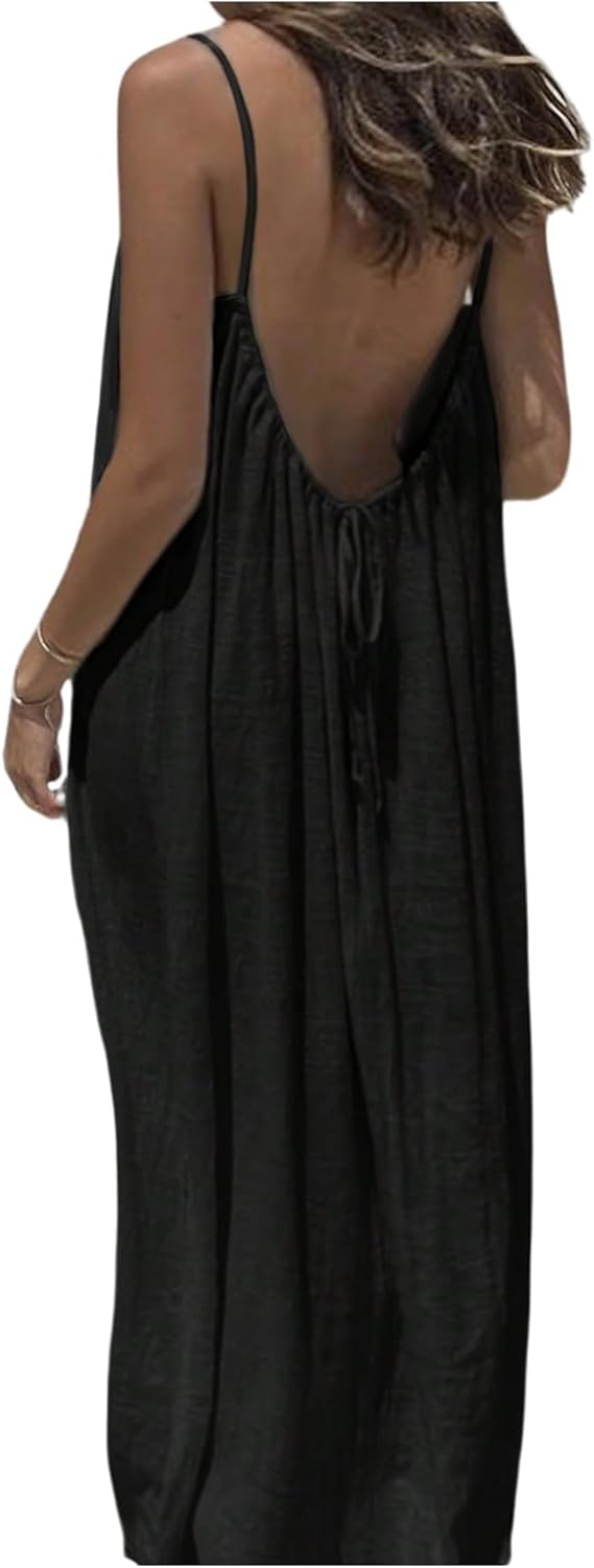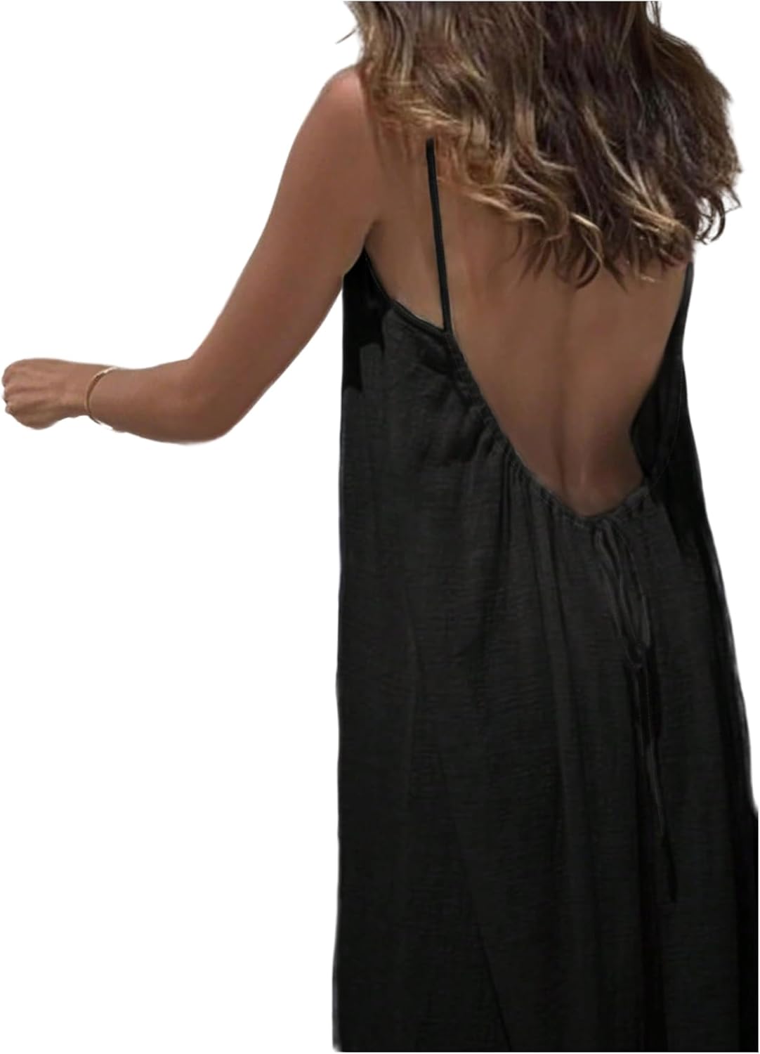 GORGLITTER Women’s Spaghetti Strap Open Back Cami Dress Sleeveless Loose Flowy Beach Long Dress