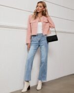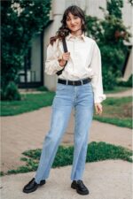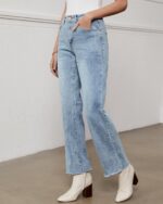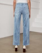 Price: (as of – Details) KDF 2024 New Fashion High Waisted Straight Leg Jeans for Women Design:1.Crop Raw Hem; 2.