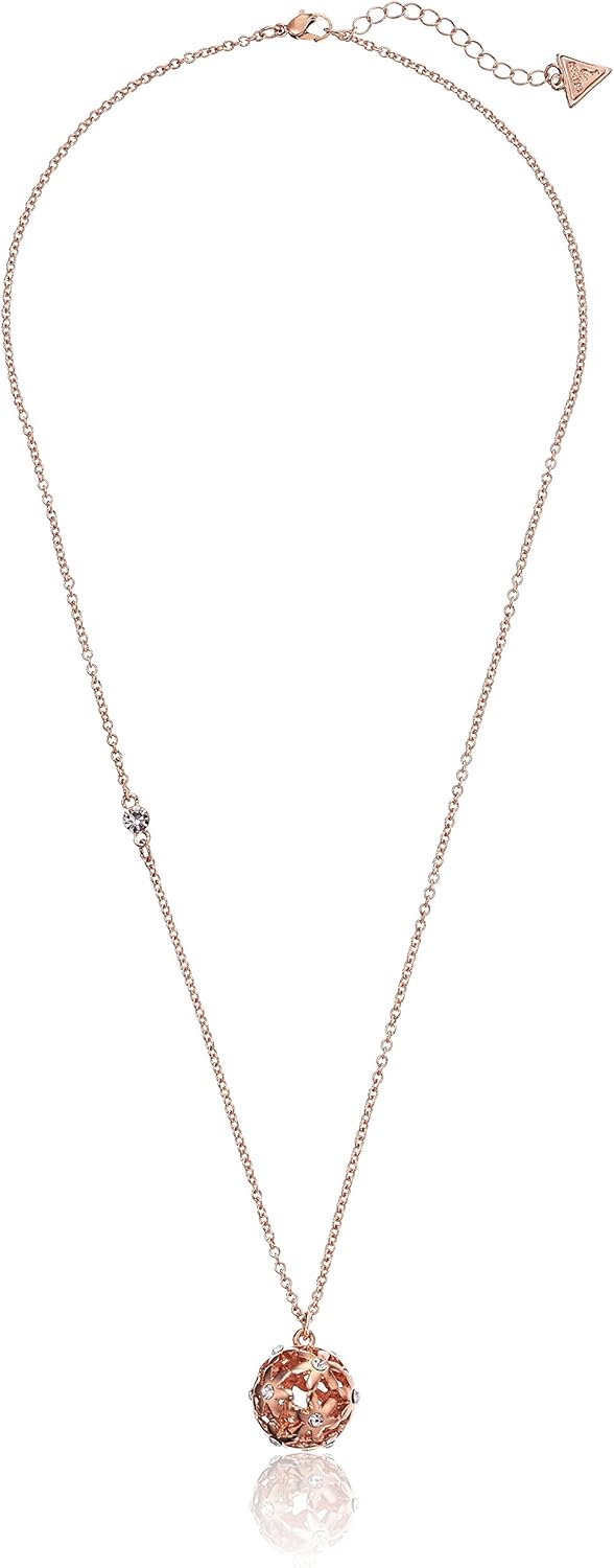 Radiate charm and whimsy with this GUESS® necklace. This delicate necklace features a ball pendant with a cutout floral design. Choose from silver or gold-tone metal. Lobster clasp closure with extender chain. Imported. Measurements: Chain Circumference: 24 in Adjuster Length: 2 in Pendant Height: 3⁄4 in Pendant Width: 3⁄4 in Weight: 0.58 oz