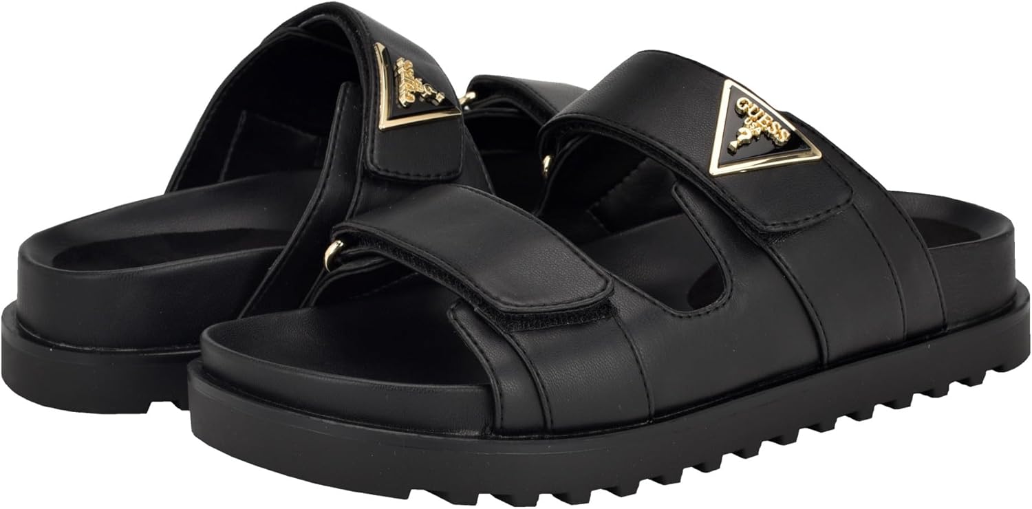 This double band logo slide from GUESS is a must-have that hits the season’s trend perfectly. This sandal has a comfortable footbed with adjustable straps. Est. 1981, Guess is a global lifestyle brand and a symbol of a young, adventurous lifestyle.