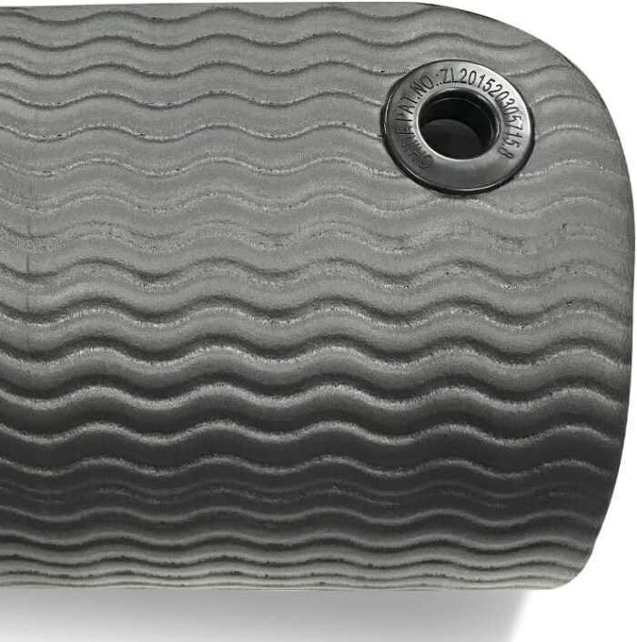 Thick, squishy, and comfortable / Hanging rings for neat storage and air-drying / Unique wave pattern to improve traction / Includes a carrier bag and strap for storage and portability