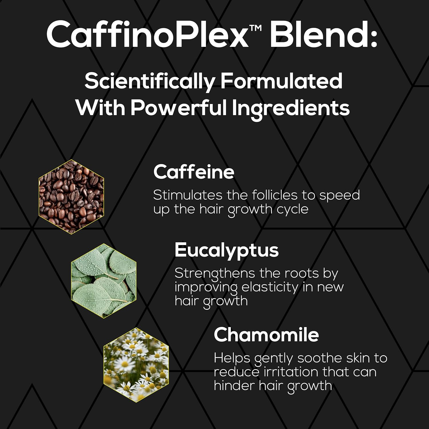 Caffeine – Studies have shown that when applied transdermally, this powerful ingredient can help extend the life cycle of hair follicles and encourage healthy hair.