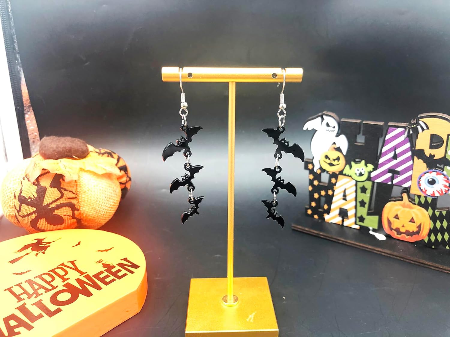 Home Jewelry & Fashion Accessories Earrings Halloween Earrings for Women Girls,Gothic Hallowmas Acrylic Dangle Earrings, Black Bat Pumpkin Candy Drop Earrings for Halloween Festival Gift