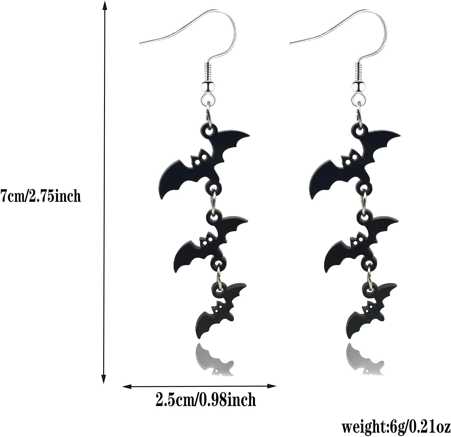 Halloween Earrings for Women Girls,Gothic Hallowmas Acrylic Dangle Earrings, Black Bat Pumpkin Candy Drop Earrings for Halloween Festival Gift