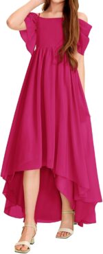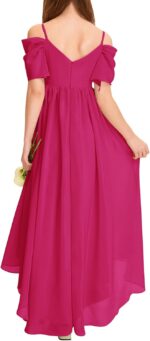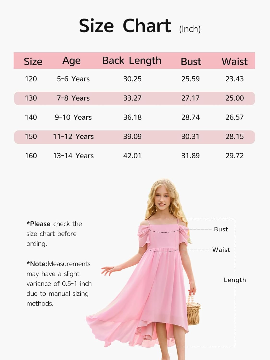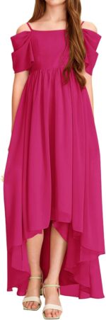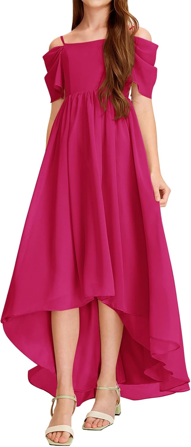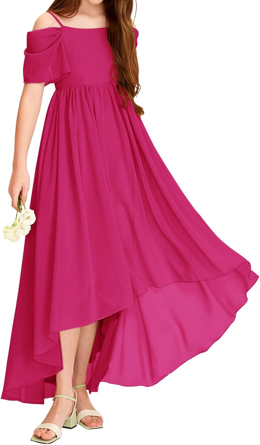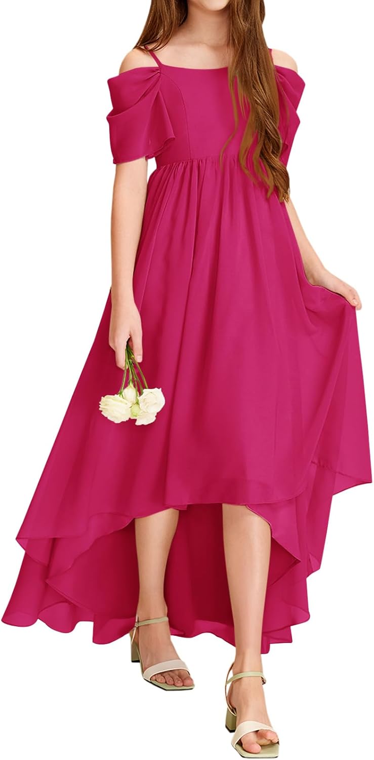 Haloumoning Girls Cold Shoulder Dress A-line Asymmetrical Chiffon Junior Bridesmaid Birthday Party Dress