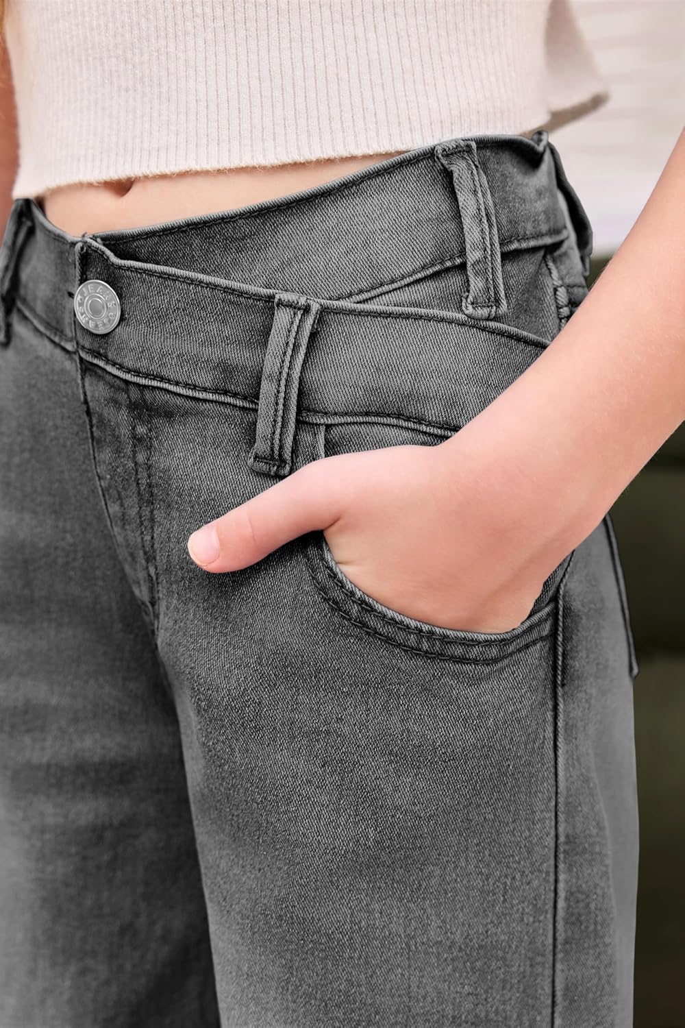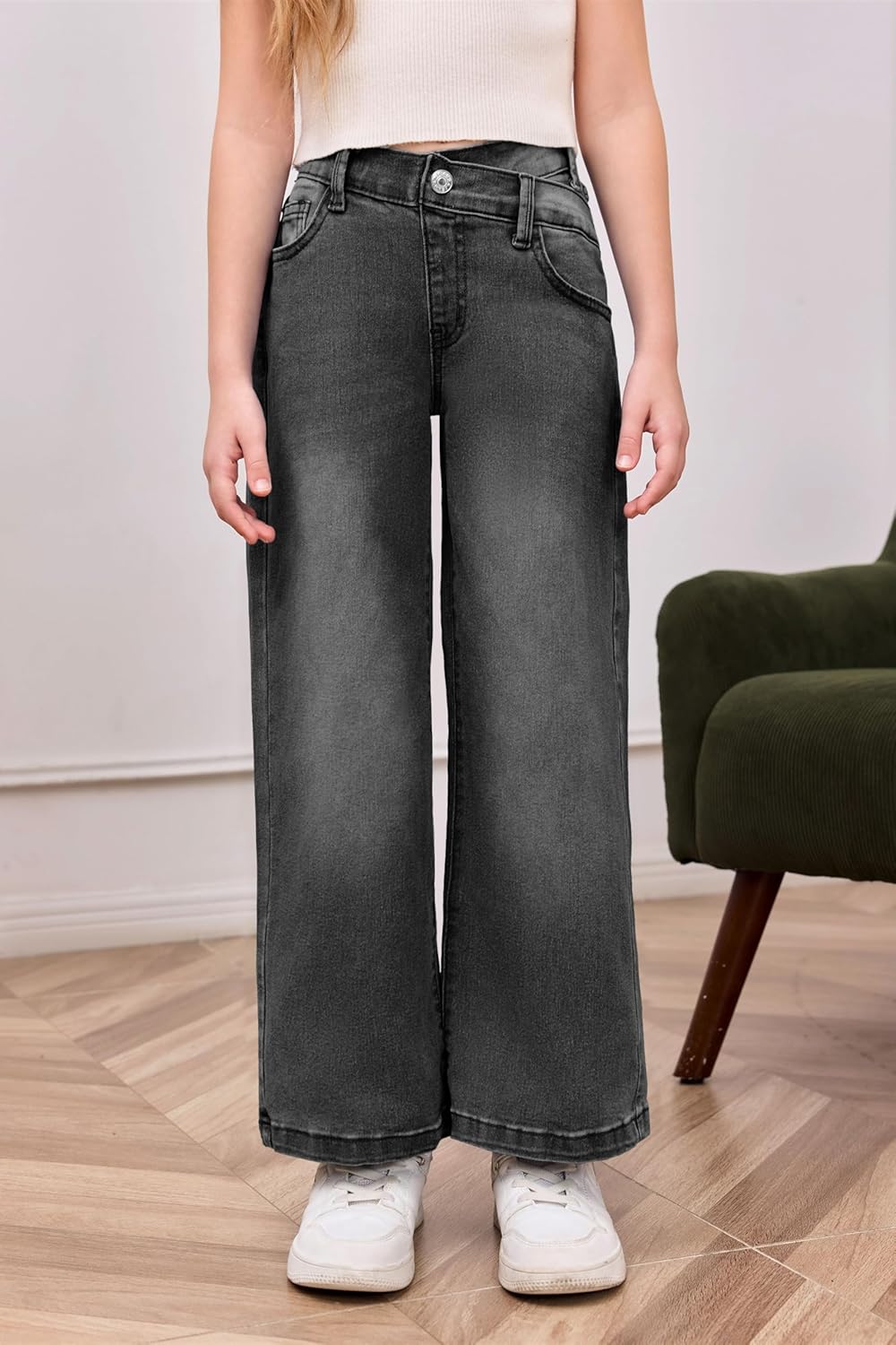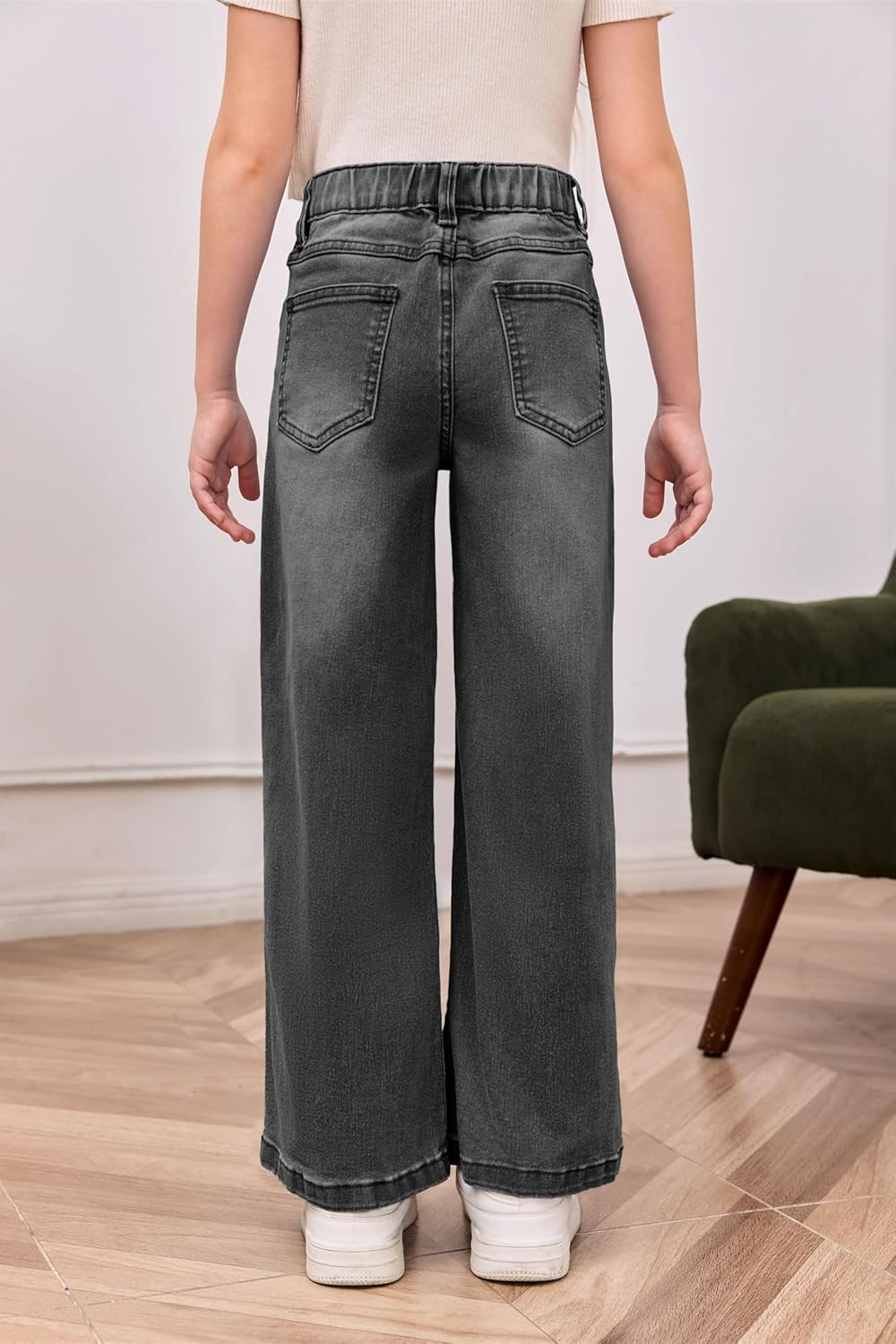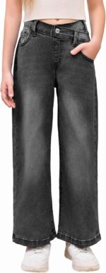 EXARUS Girls Jeans Pants Wide Leg/Flare/Skinny Denim Pant Ripped High Waist Elastic Band Casual with Pockets Kids 6-14Y
