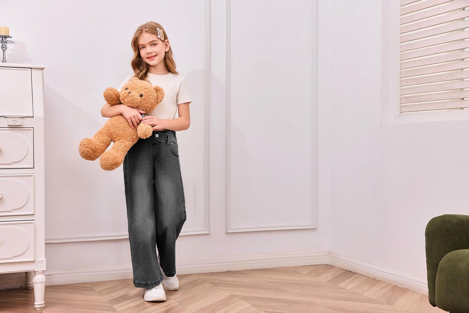 Girls’ loose fit jeans for different occasions. High quality, elastic and comfortable.