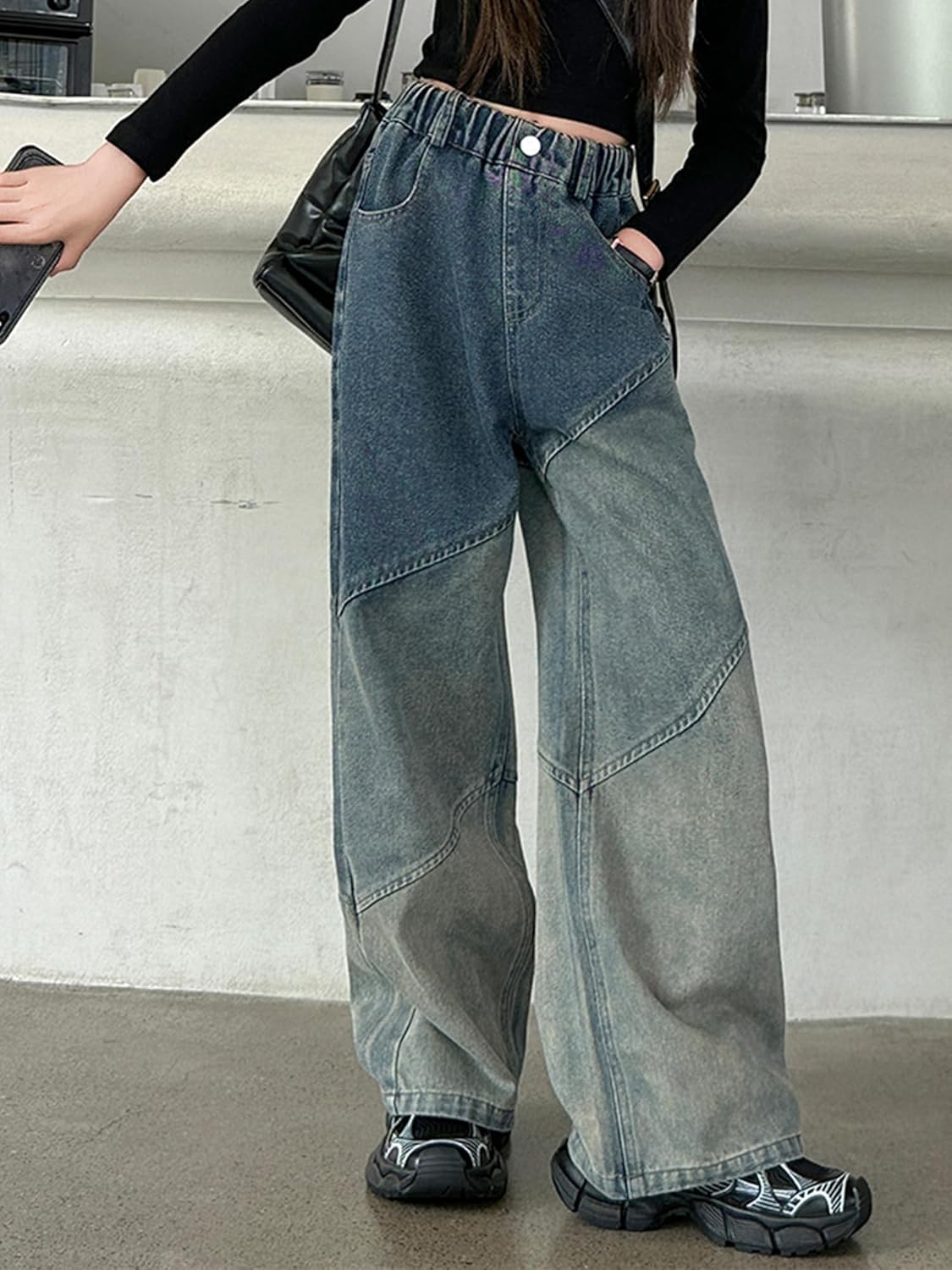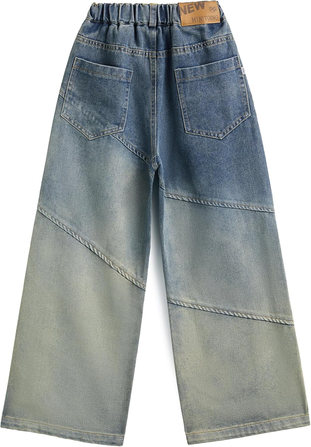 Rolanko Girls Jeans Denim Elastic Wasit Wide Leg Baggy Pants Kids Clothes 4-14 Years