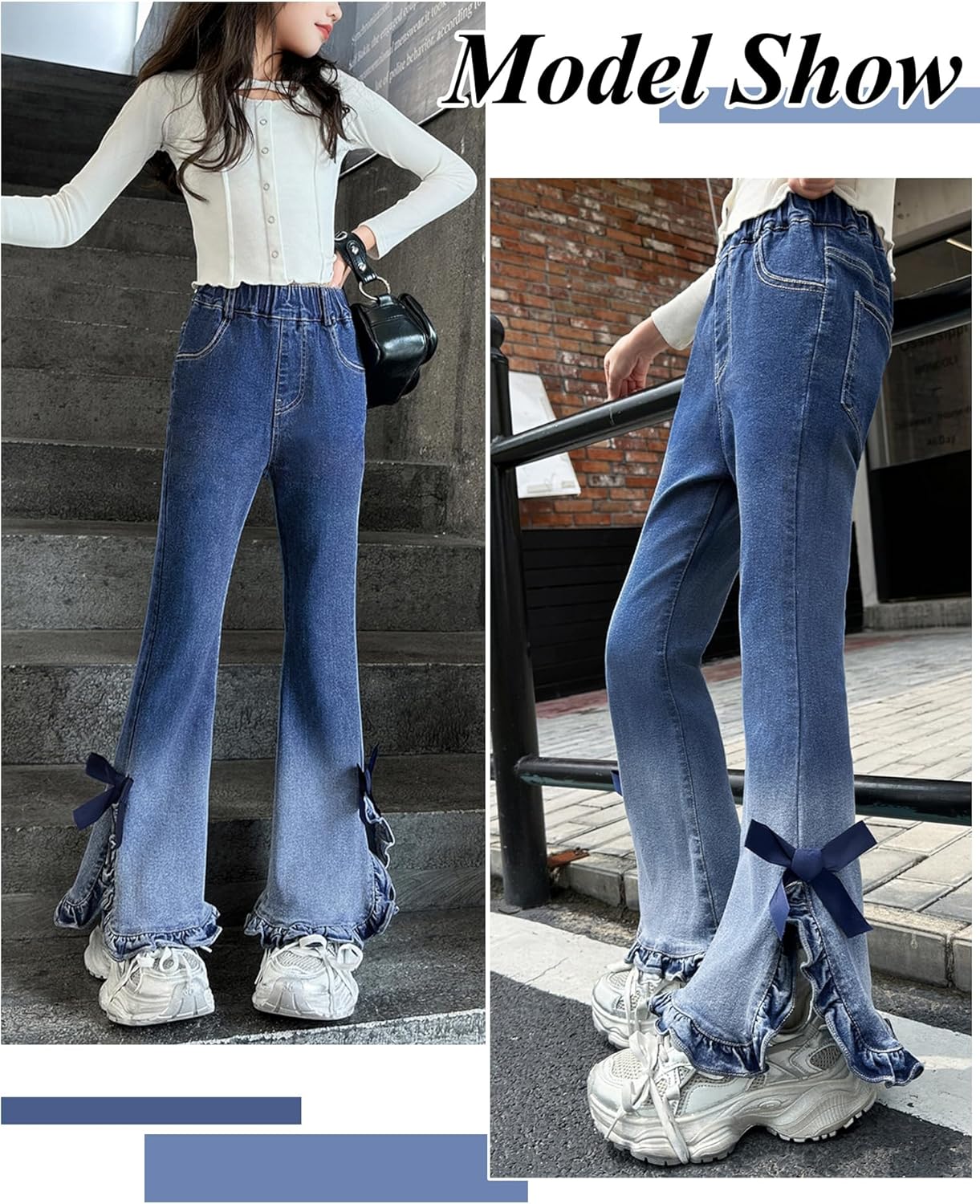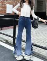 Home Clothing & Fashion Jeans & Pants Happy Cherry Flare Jeans for Girls – Girl’s Y2K Bow Bell Bottom Kids Jeans Bell Bottoms Pants for Girl Skinny Pockets