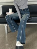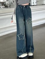 Shine like a star in these girls baggy jeans featuring a double star print design. Perfect for Y2K and streetwear lovers, these loose-fit denim pants bring a cool and confident vibe to any outfit — ideal for girls who love standing out with style.