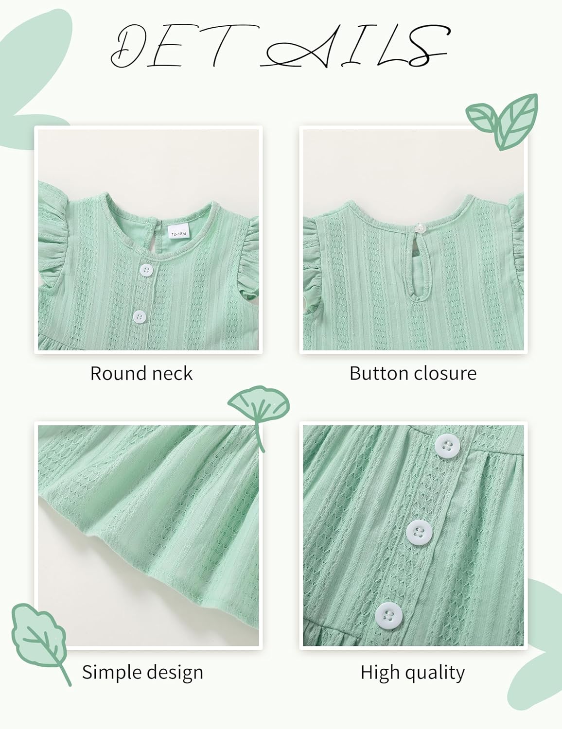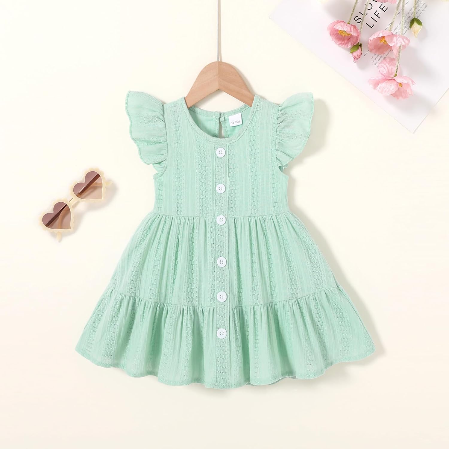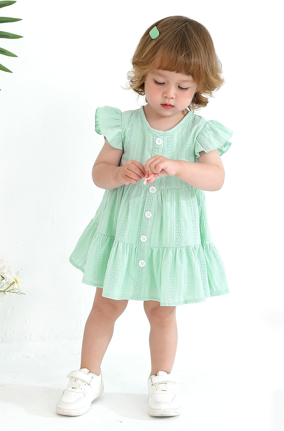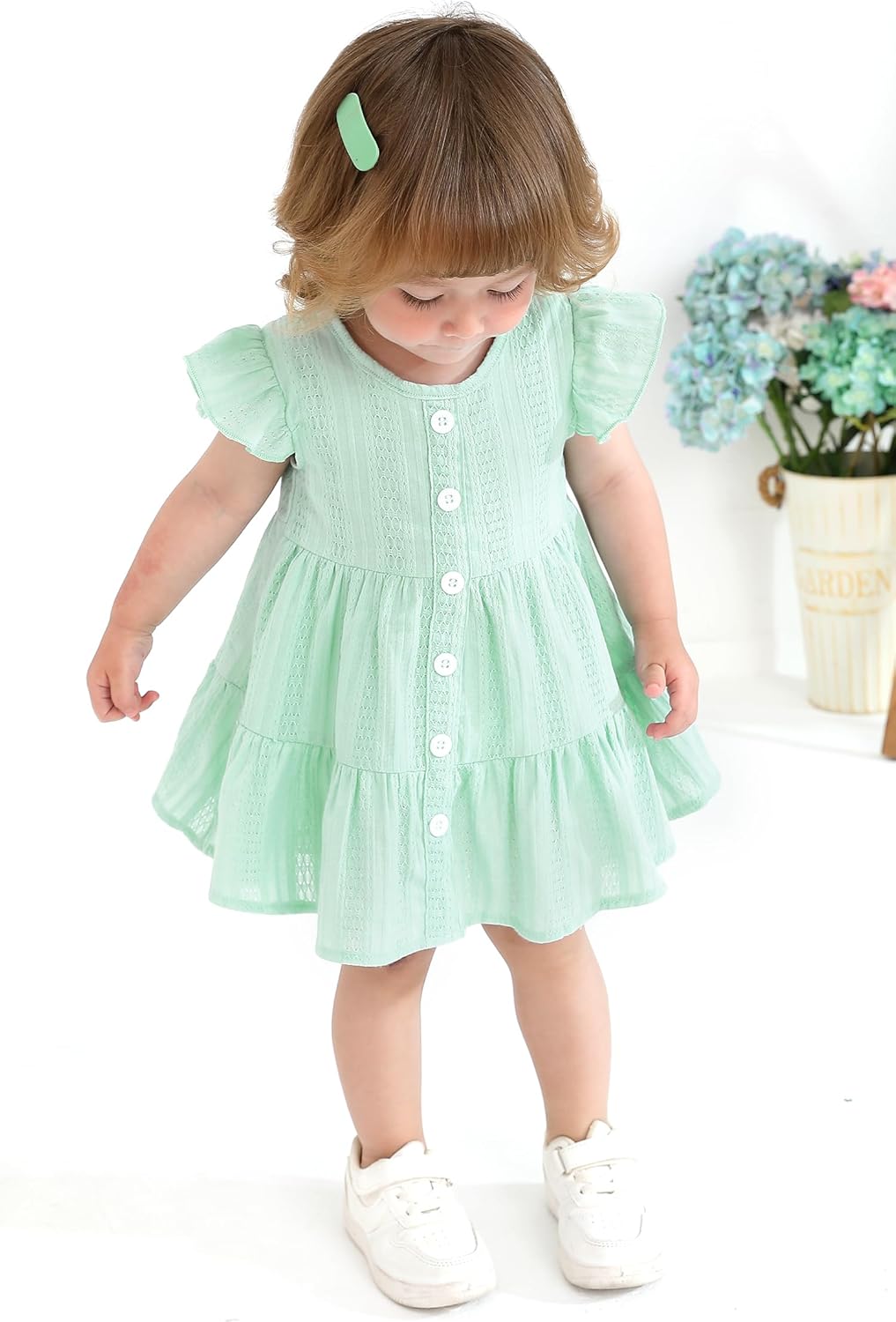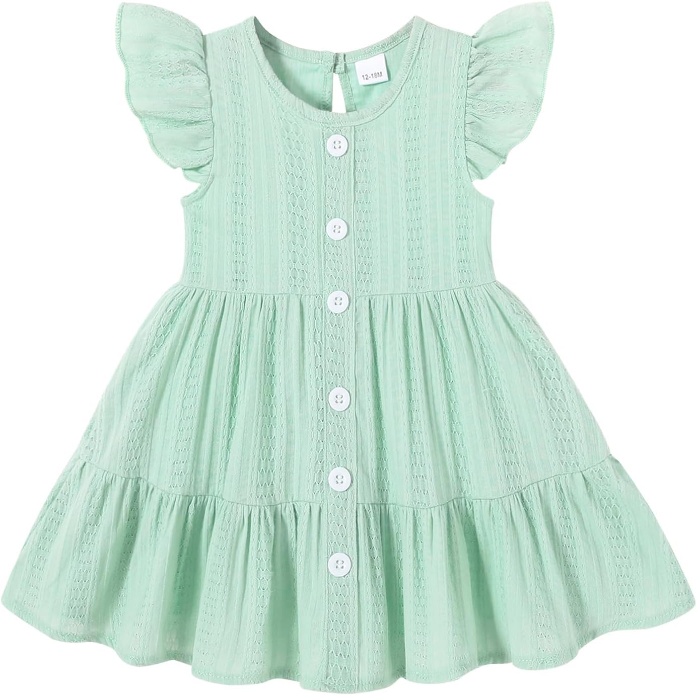 Happy Town Toddler Baby Girl Casual Dresses Summer Sundress Ruffle Button Down Solid Girl’s Boho Dress Spring Outfits