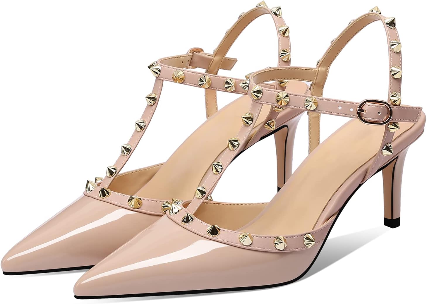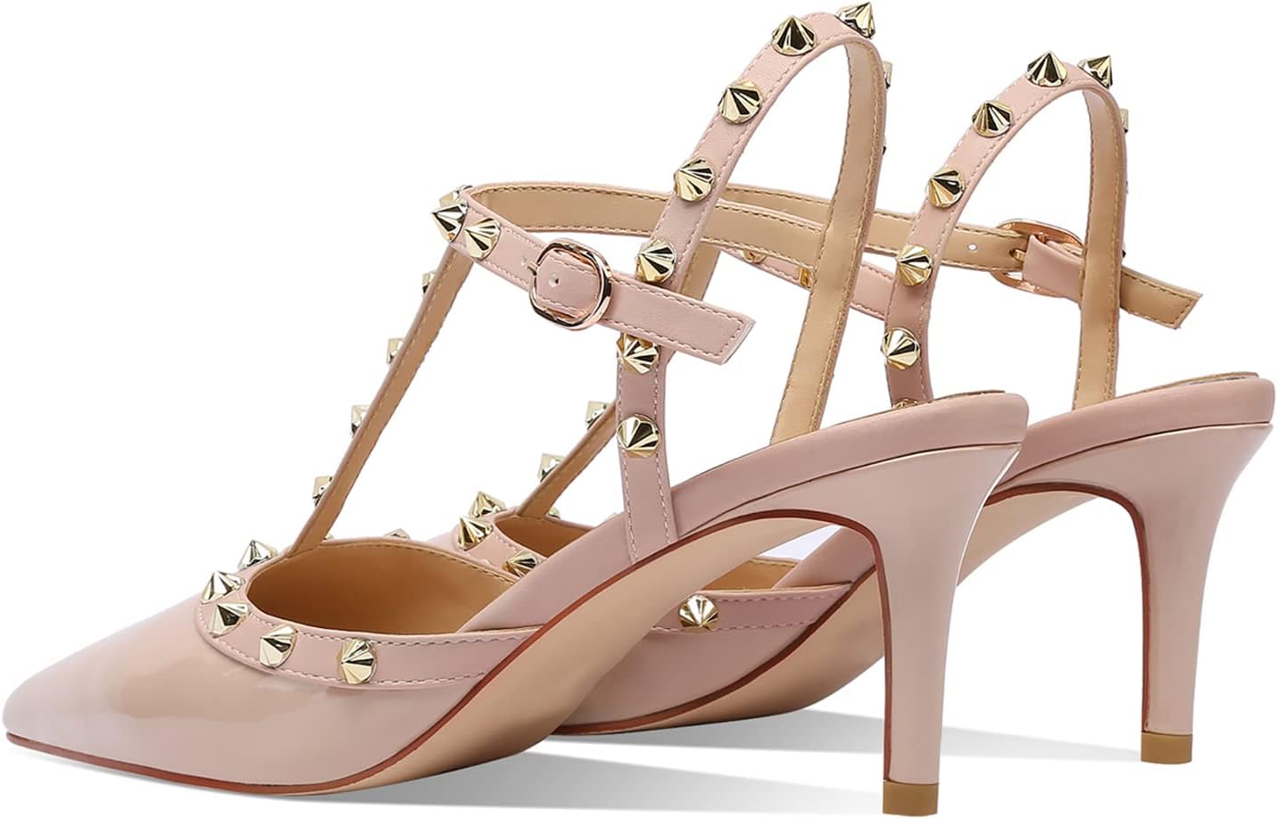 【Features】featuring with Ankle Strap, Studs, Rivets, Slingback, T-strap, Pointy, Closed Toe, Comfy, Mid Heel