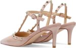 Heeled Sandals with Studs for Women Studded Heels Pointed Toe Ankle Strap 2.5inch Stiletto Kitten Heels Dressy Closed Toe Spike Pumps Shoes