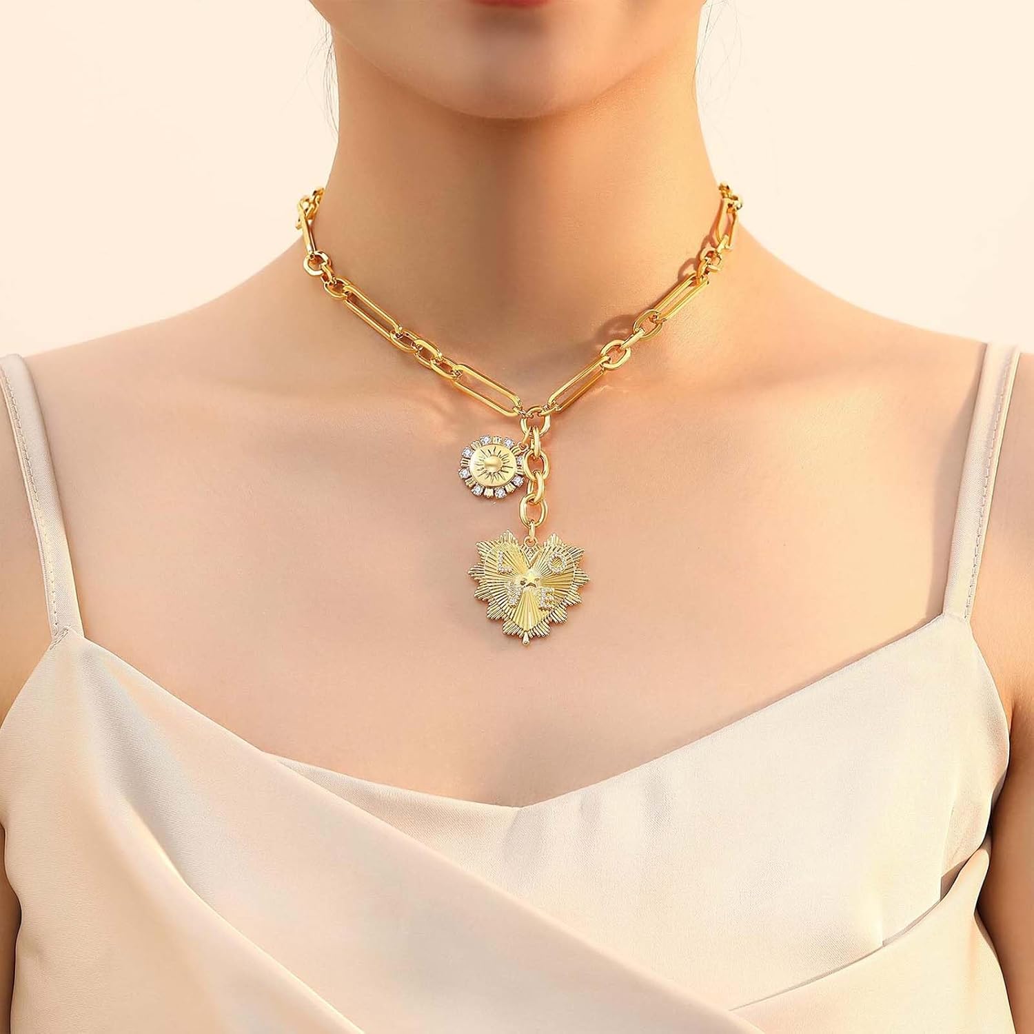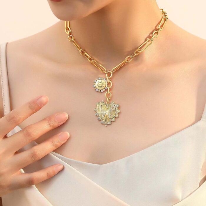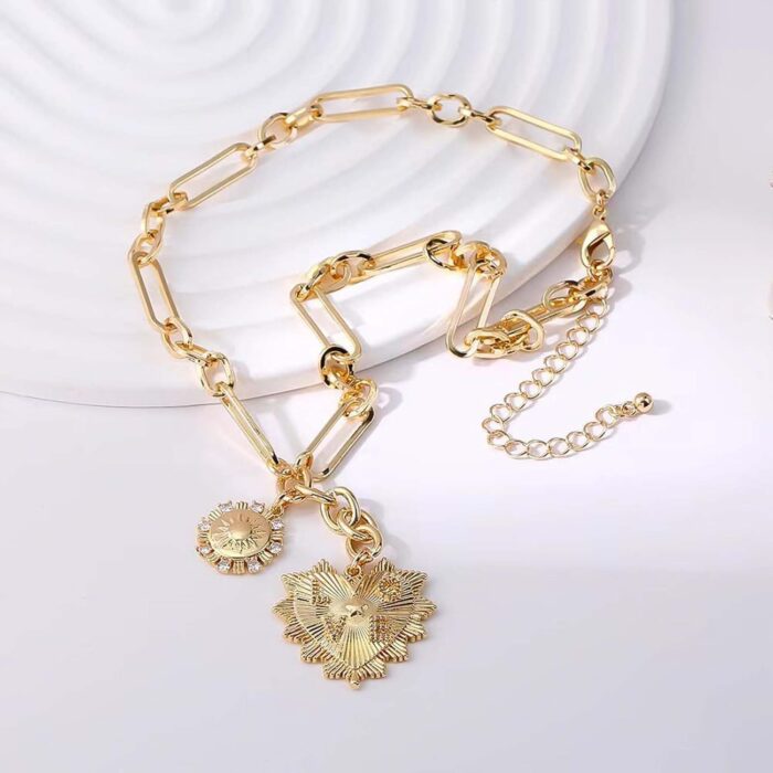 Be the first to review “HETICA Chunky Gold-Plated Necklace for Women Heart Pendants Necklace Sun Flower Necklace Fashion Hip Hop Choker Gift” Cancel reply
