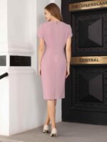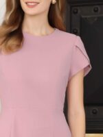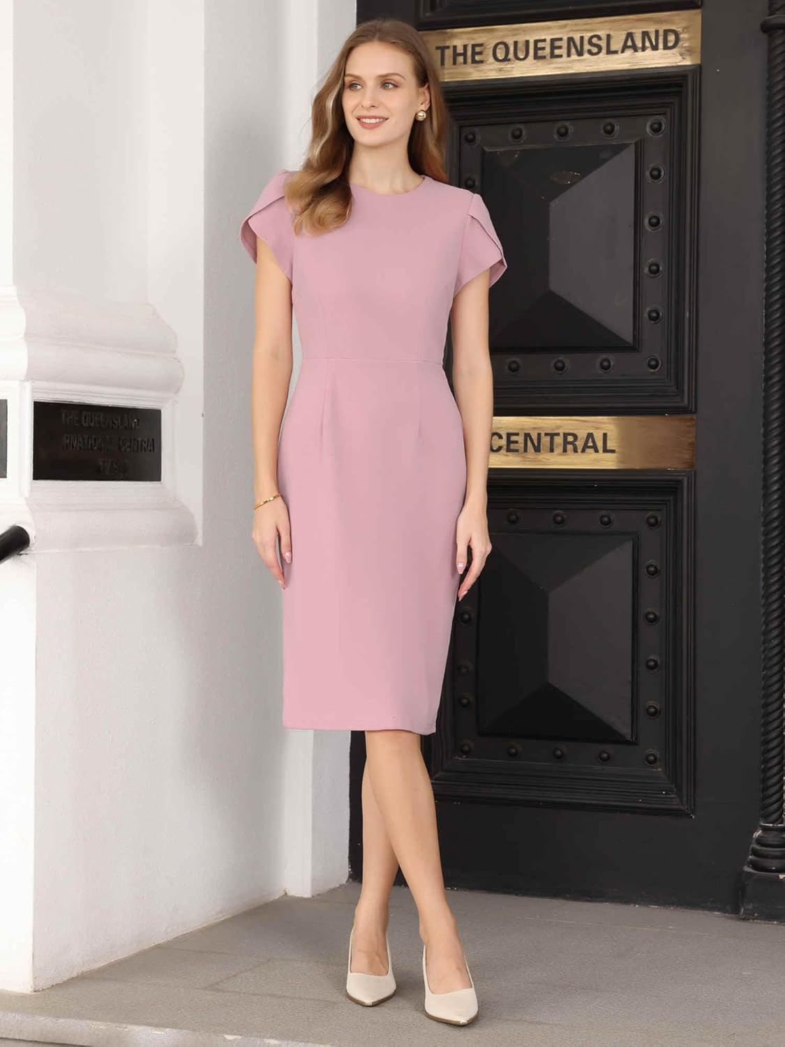 STYLE – Keep your look professional and stylish in this dress from Hobemty, featuring a crew neck, short petal sleeve, zipper back, slit back and midi length.