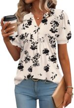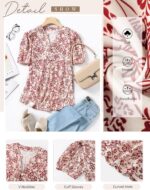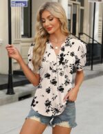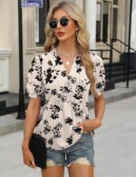 • This new top is designed for the upcoming spring and summer seasons. It features a unique V – neck, also known as the Henley collar, which adds a touch of elegance and charm. The short sleeves with a puff sleeve design make it look fashionable and trendy.