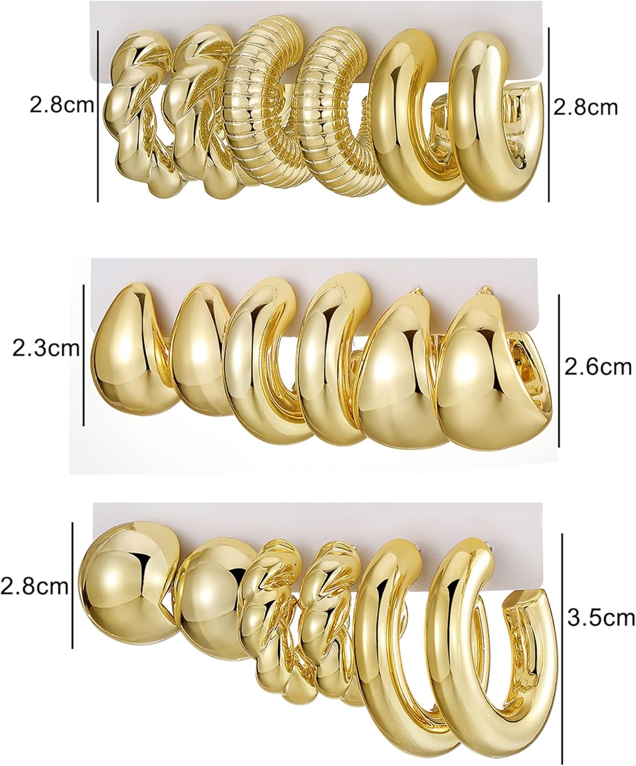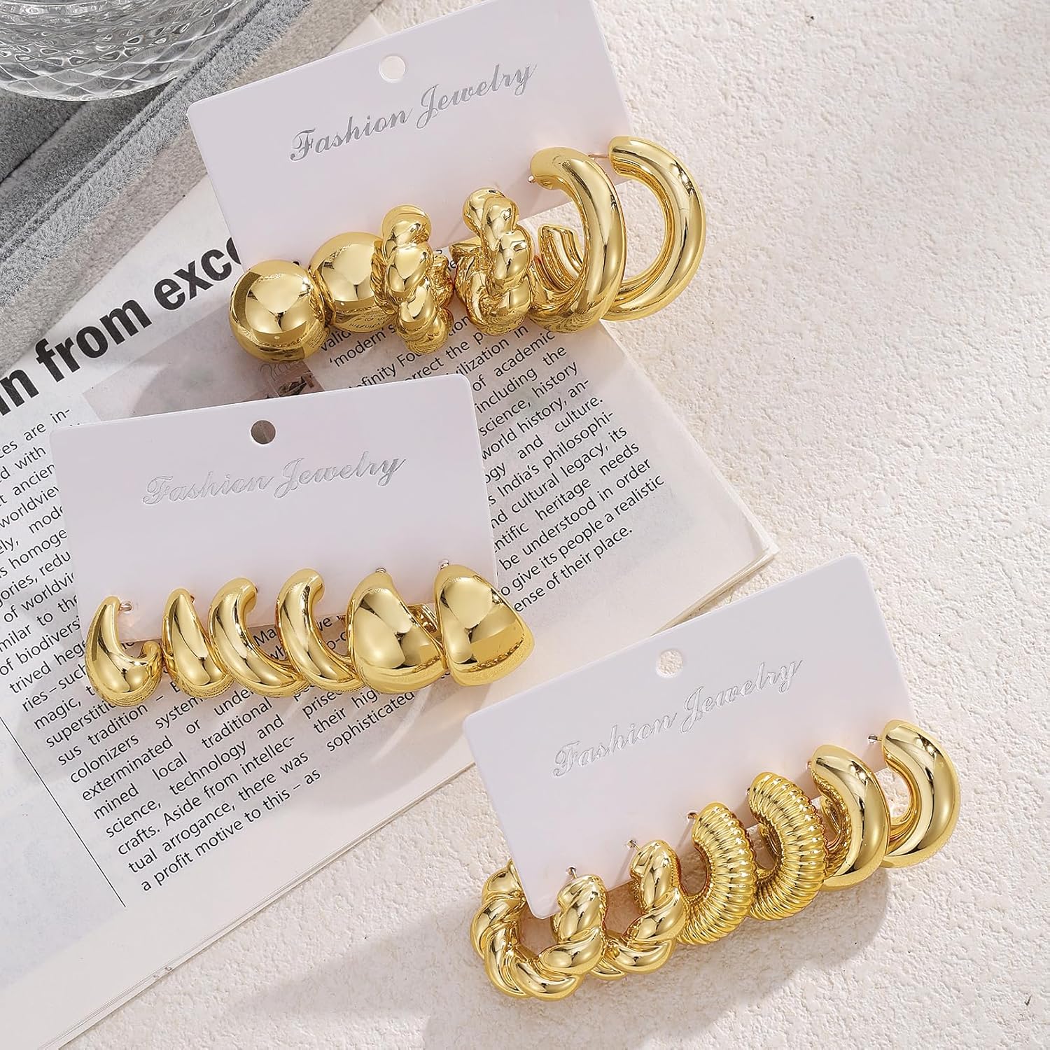 IFKM 24 Pairs Gold Hoop Earrings Set for Women Hypoallergenic Chunky Chain Twisted Open Hoops Dangle Earring Packs for Birthday Party Christmas Fashion Jewelry Gift