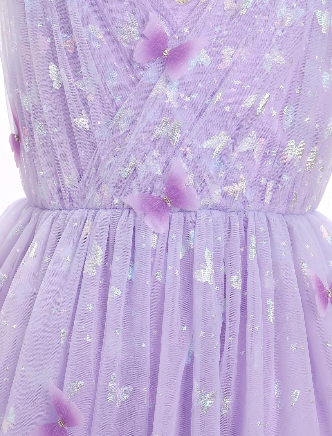 Dress Hem: 3D Sequin Butterfly Stars on Tulle, Multi Layers Tulle, Ruffles Lace Tulle Tutu Skirt