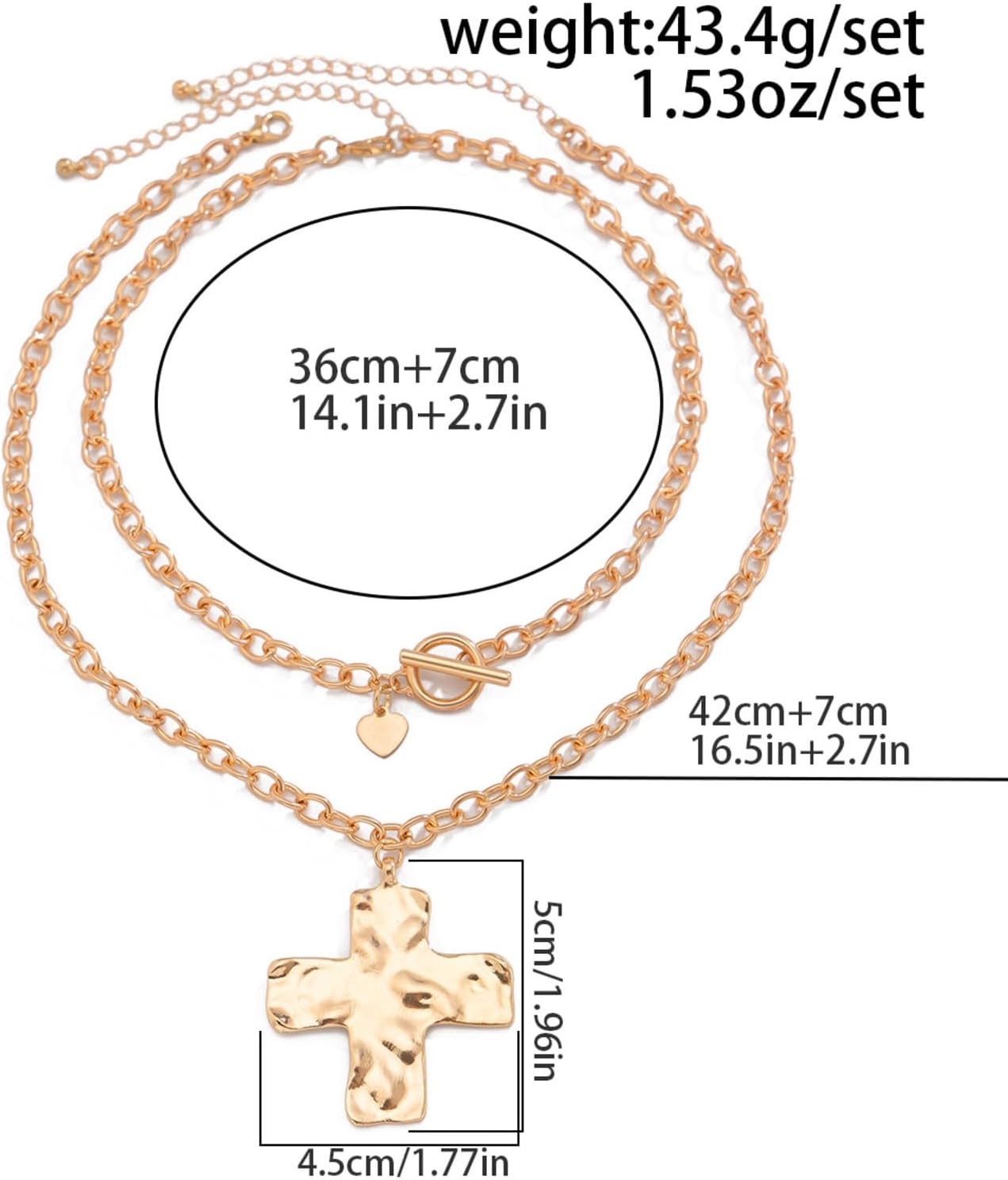 Home Jewelry & Fashion Accessories Necklaces & Pendants IQIC Chunky Necklace Chunky Cross Necklace for Women Big Cross Statement Necklaces Trendy Toggle Necklaces Hammered Bold Vintage Jewelry