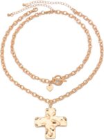 IQIC Chunky Necklace Chunky Cross Necklace for Women Big Cross Statement Necklaces Trendy Toggle Necklaces Hammered Bold Vintage Jewelry