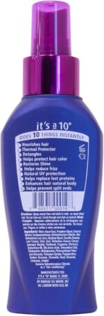 Inhibits dry, damaged hairAdds shineDetanglesControls frizzSeals & protects hair colorHelps prevent split endsStops hair breakageCreates silkinessEnhances natural bodyFlat iron spray & thermal protection