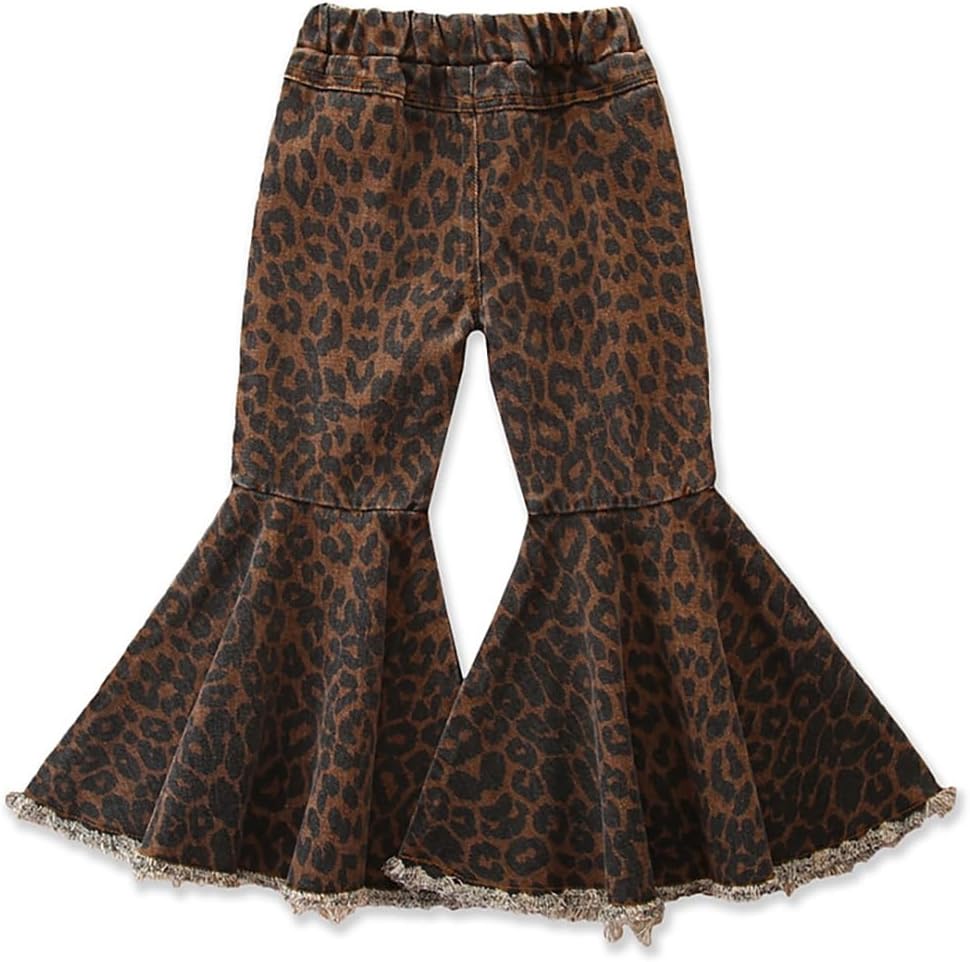 IWEMEK Toddler Girls Ruffle Ripped Jeans Bell Bottom Flare Pants Ripped Denim Leggings Trousers Elastic Waist Ruffle Pants