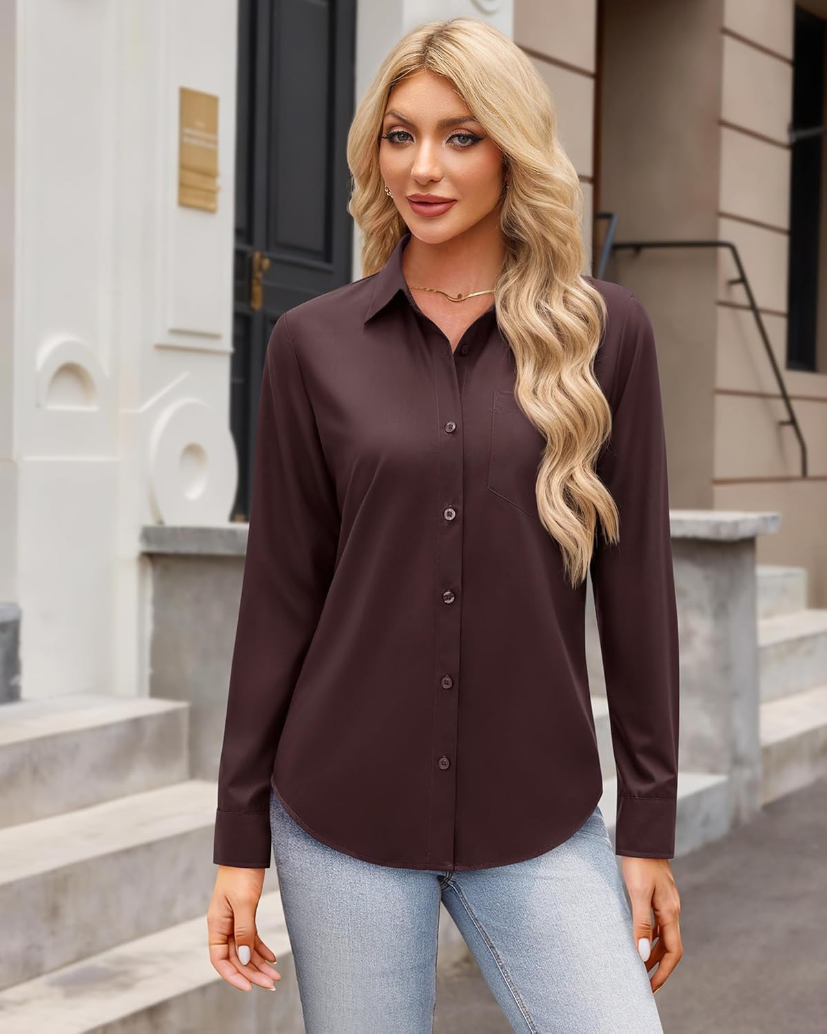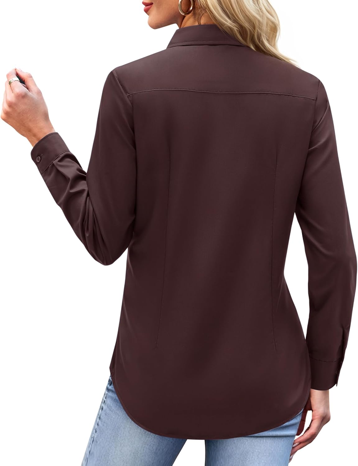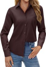 J.VER Button Down Shirts for Women Long Sleeve Dress Shirts Solid Business Casual Collared Work Blouses Tops