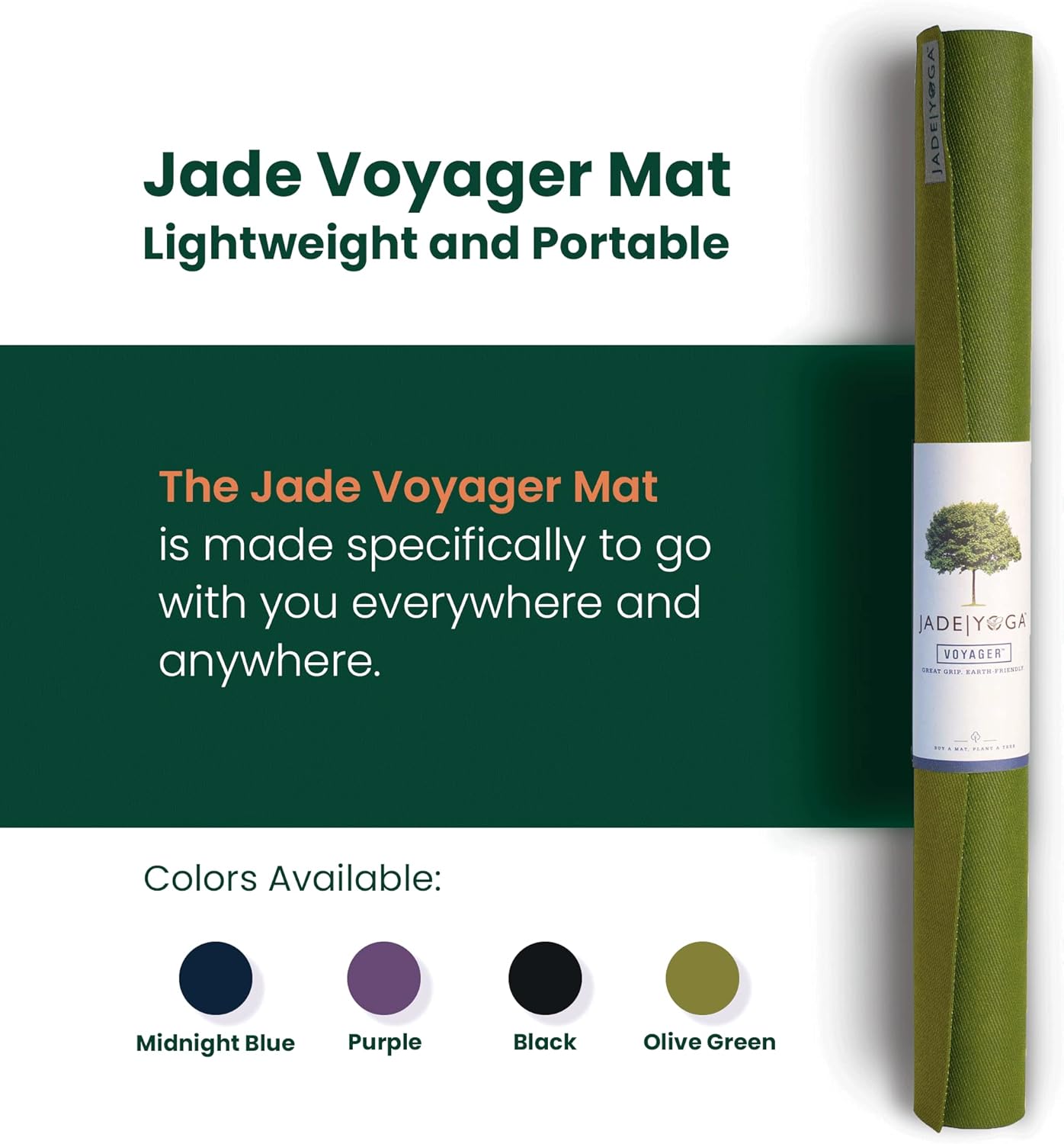 JadeYoga Voyager Yoga Mat – Lightweight & Portable Rubber Yoga Mat – Non-Slip Exercise Mat for Women & Men – Great for Yoga, Home Workout, Gym Fitness, Pilates, Stretching, and More