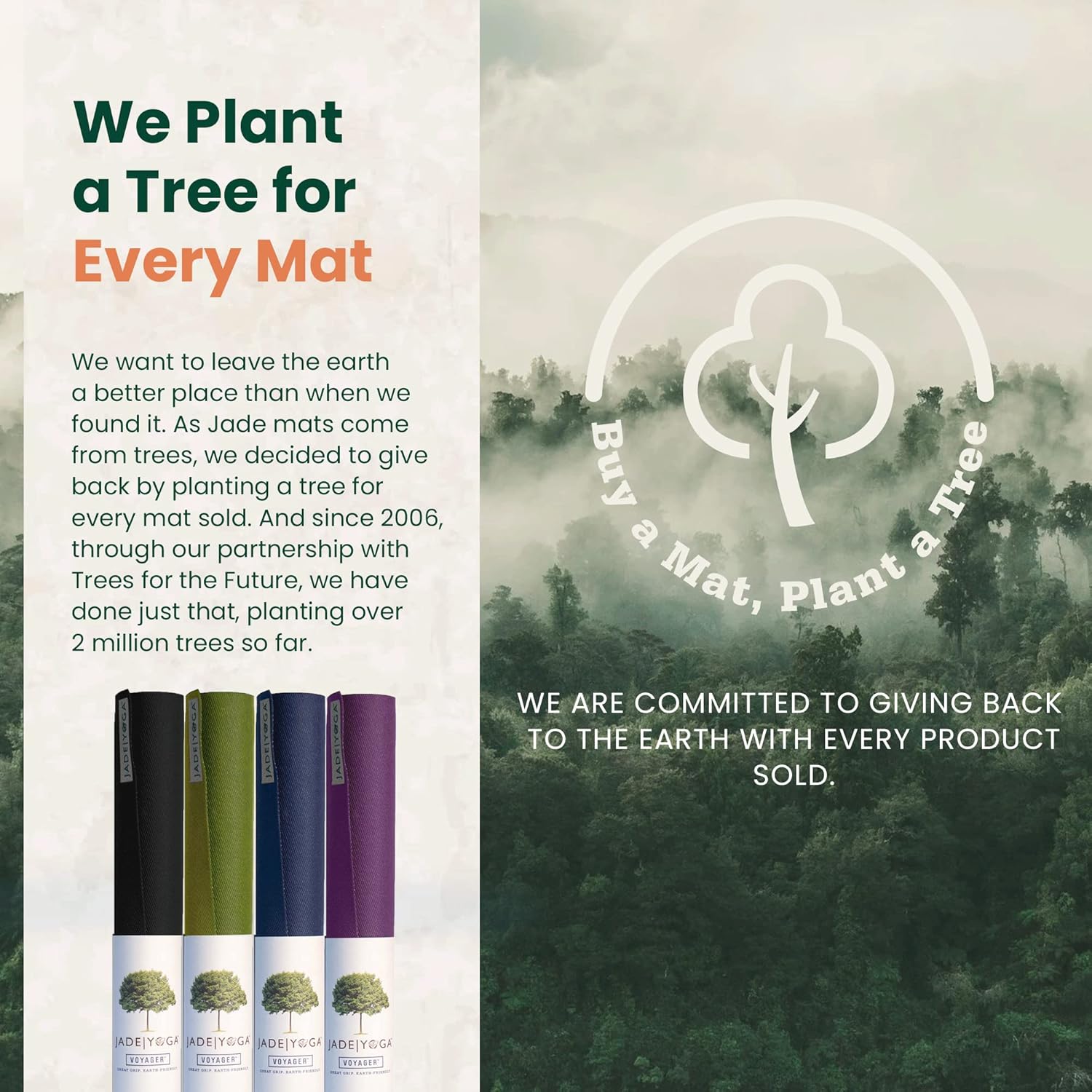 BE THE CHANGE: Join JadeYoga’s commitment to environmental conservation. With each mat sold, we plant a tree through our partnership with Trees for the Future. Over 2.5 million trees have already been planted. Inspire change and contribute to creating a better world for future generations while enjoying your yoga practice.