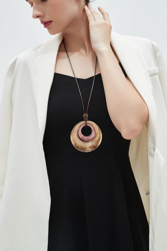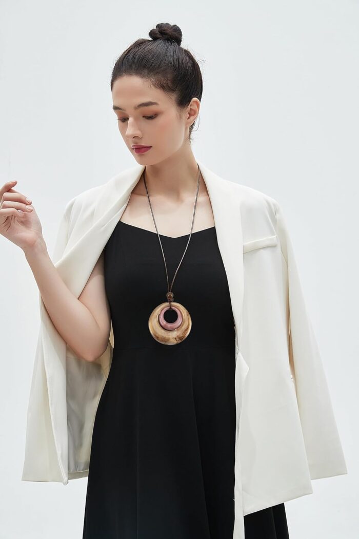 Be the first to review “Jeniiahua Long Boho Necklaces for Women Vintage Leather Wooden Pendant Y Choker Ethnic Style Gold Circle Hippie Sweater Necklace” Cancel reply